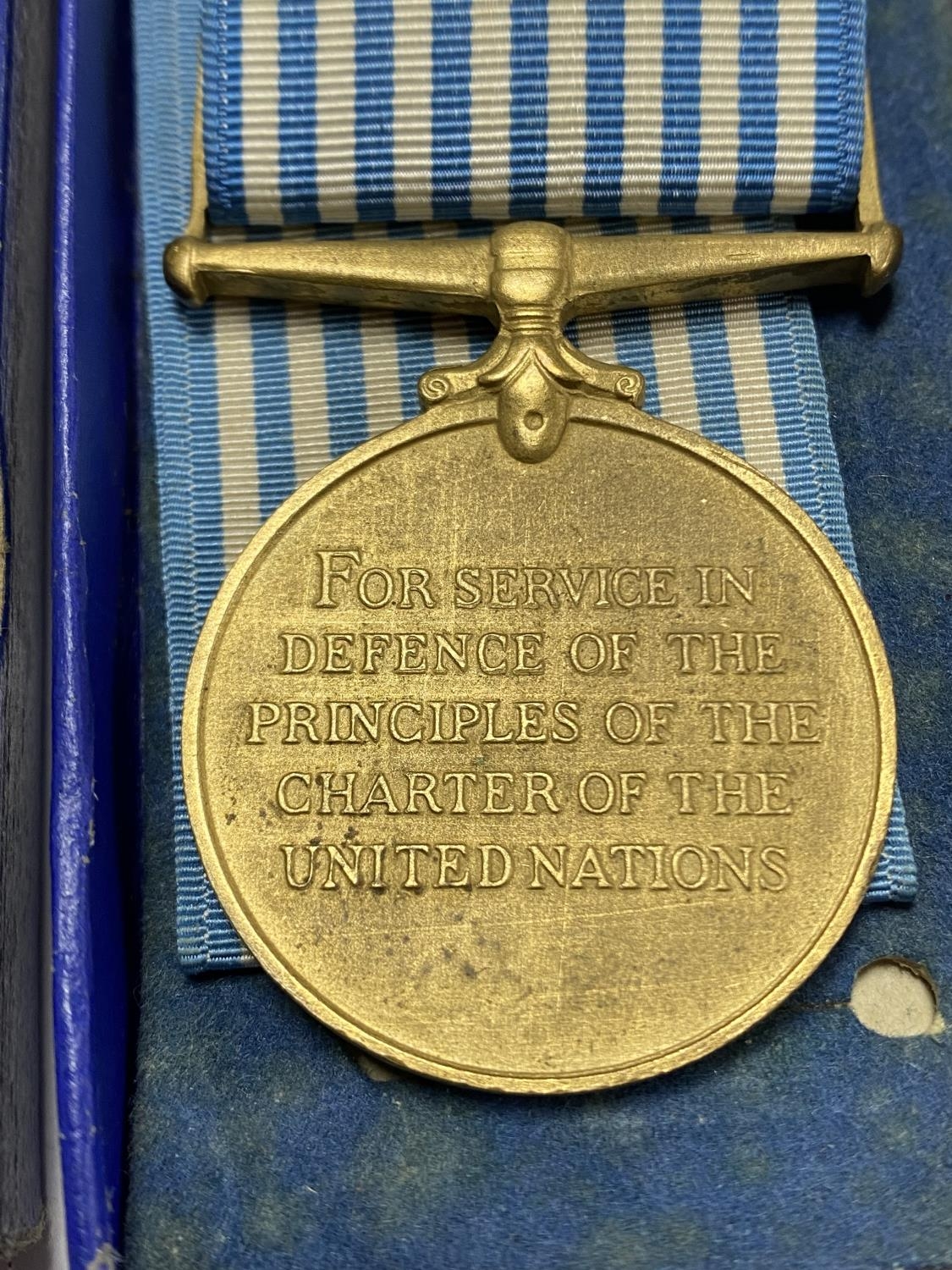ORIGINAL KOREAN WAR UNITED NATIONS SERVICE MEDAL WITH RIBBON & BOX