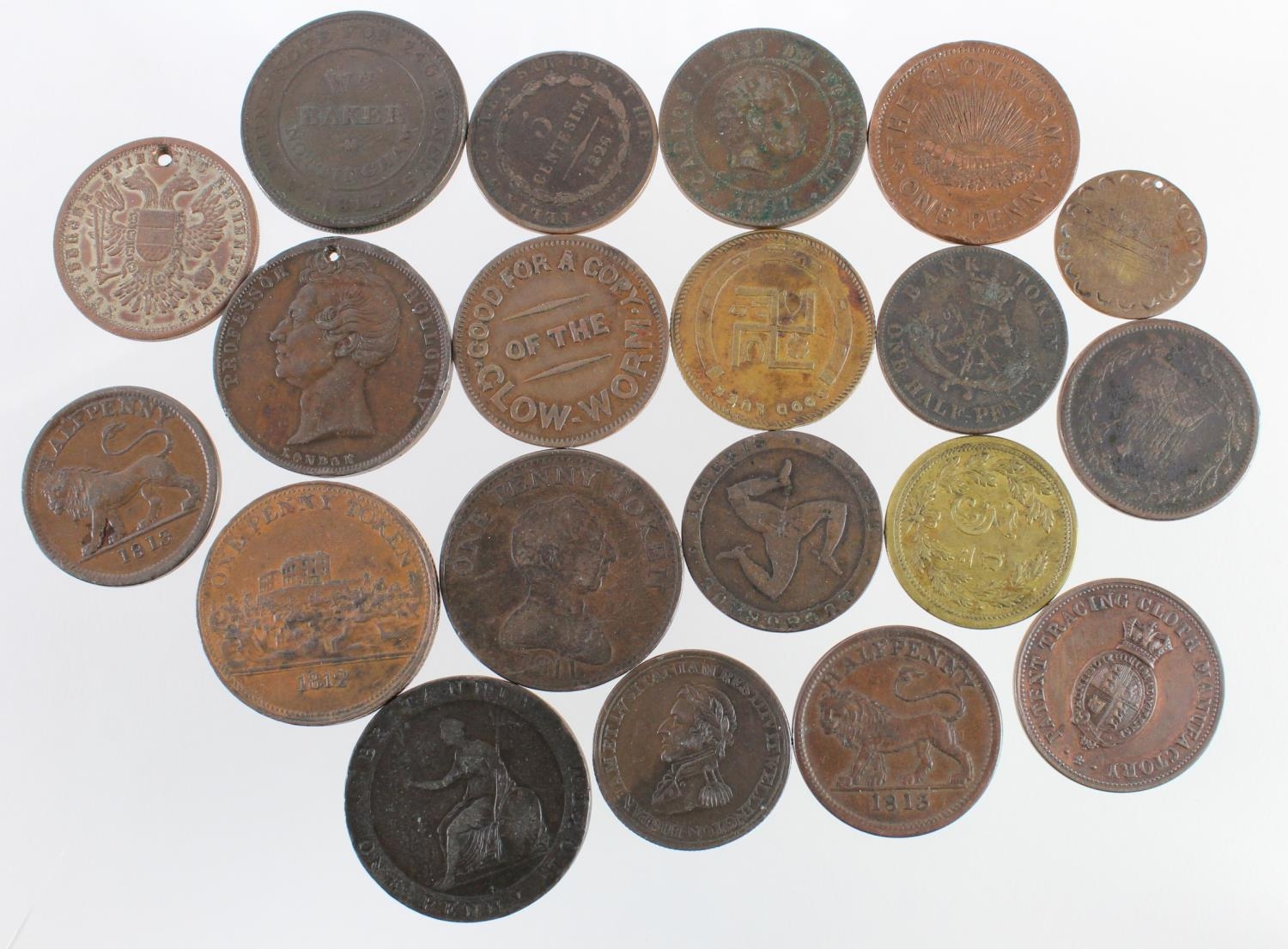 GB & World copper bronze and brass tokens, medallions and coins (20) 18th-20thC, mixed grade.