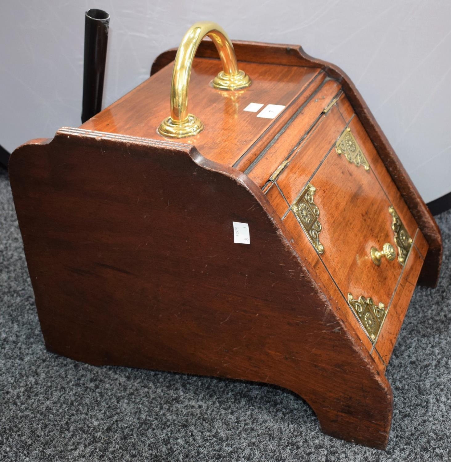 A late 19th century mahogany coal box, brass handle and fittings
