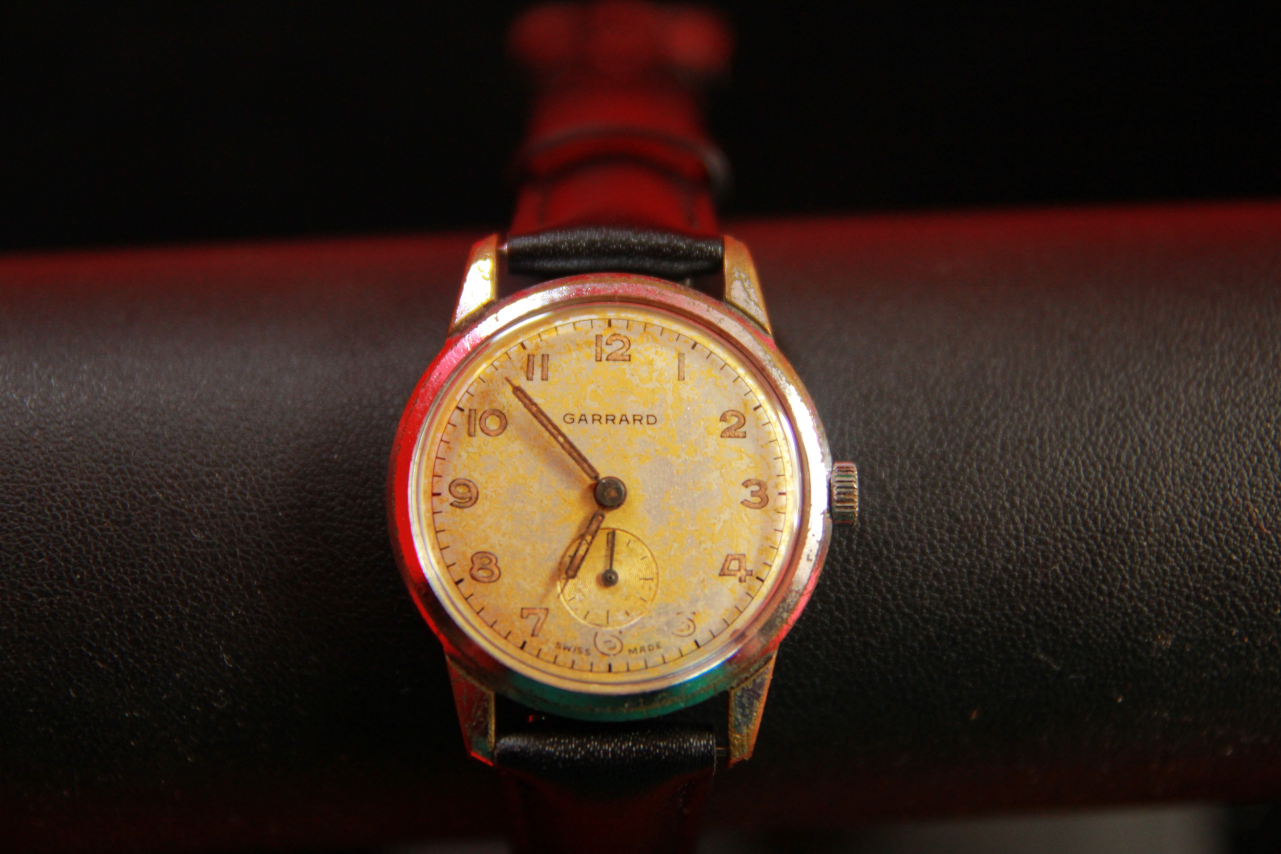 A Garrard & Co WW1 era trench watch in running order and in good condition with secondary dial for seconds
