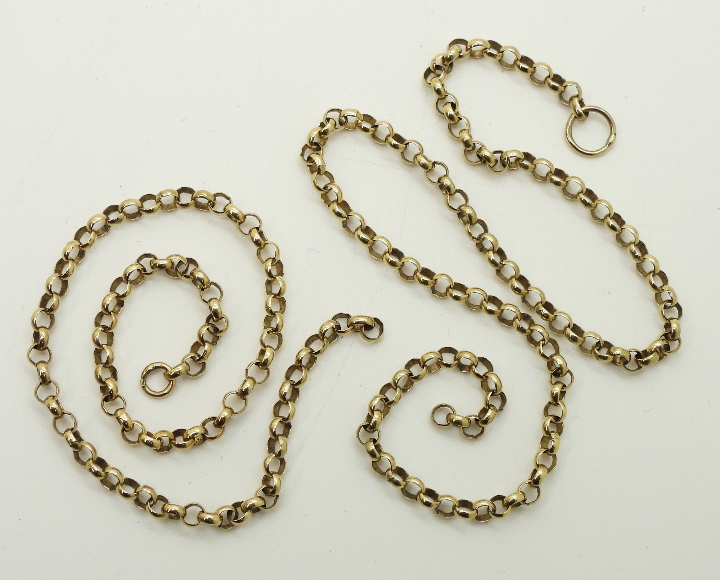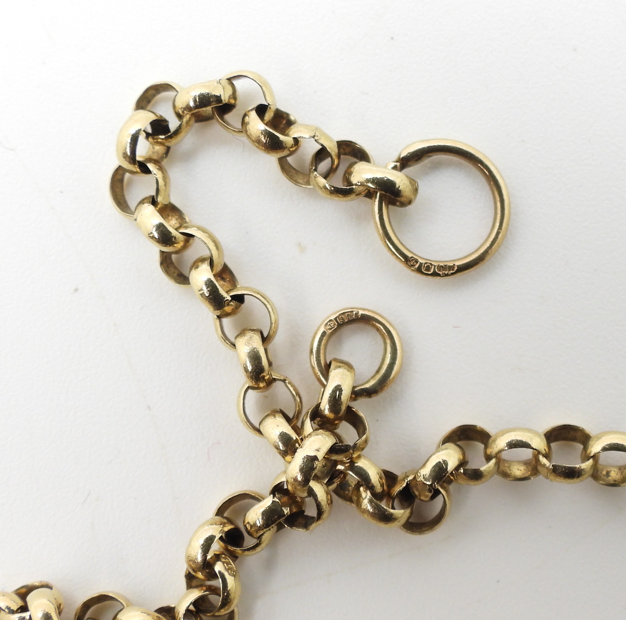 An (af) 9ct gold belcher chain, with full UK hallmarks to the end links, weight 9.2gms