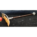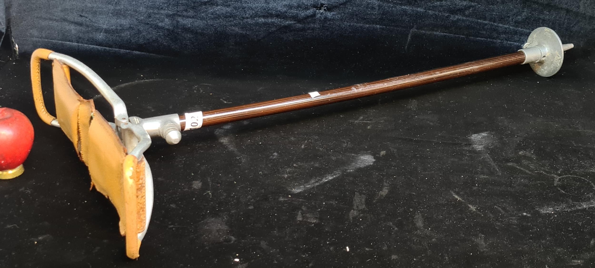 A vintage shooting stick with fold out leather seat made by Mills Ltd., Birmingham.