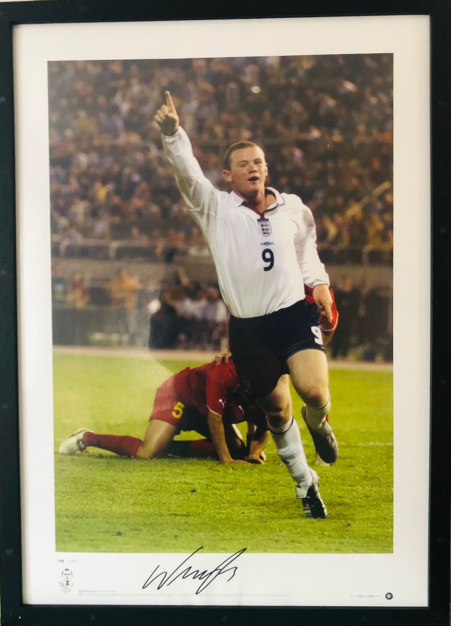 A framed signed photograph - limited edition 119/500 - signed by footballer Wayne Rooney - with certificate of authenticity
