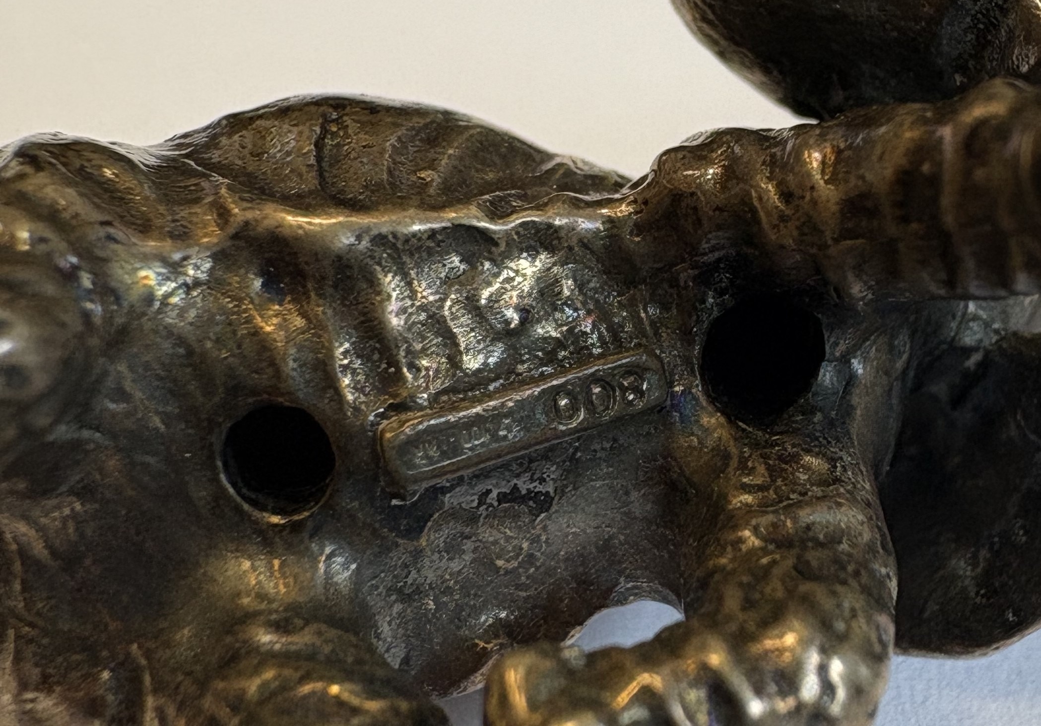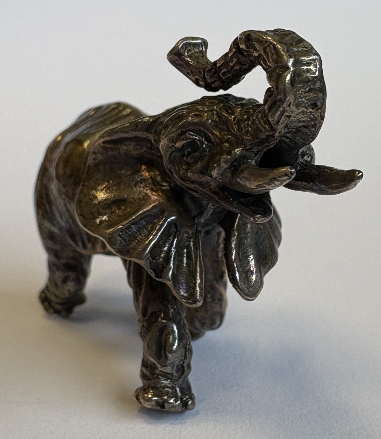 A Continental silver figure of an elephant. Approx. 31 grams. Est. £30 - £40.