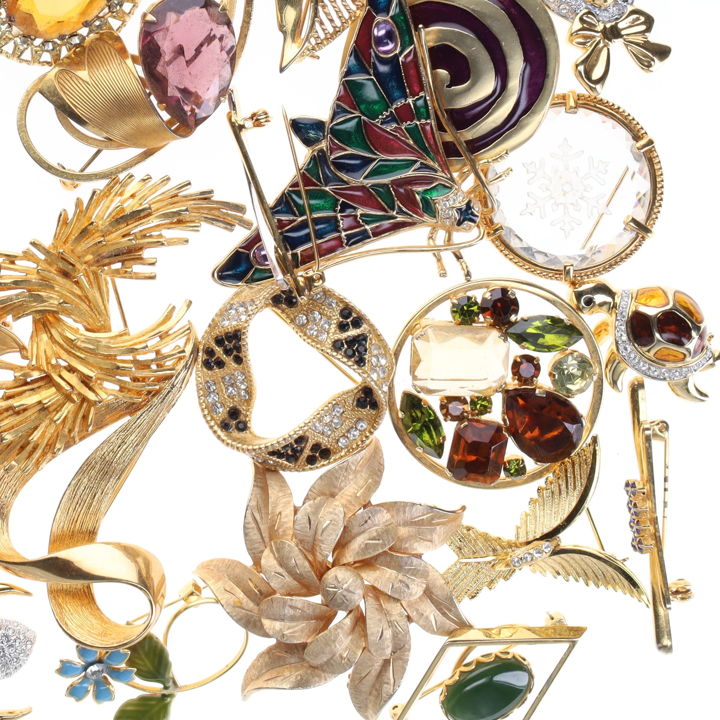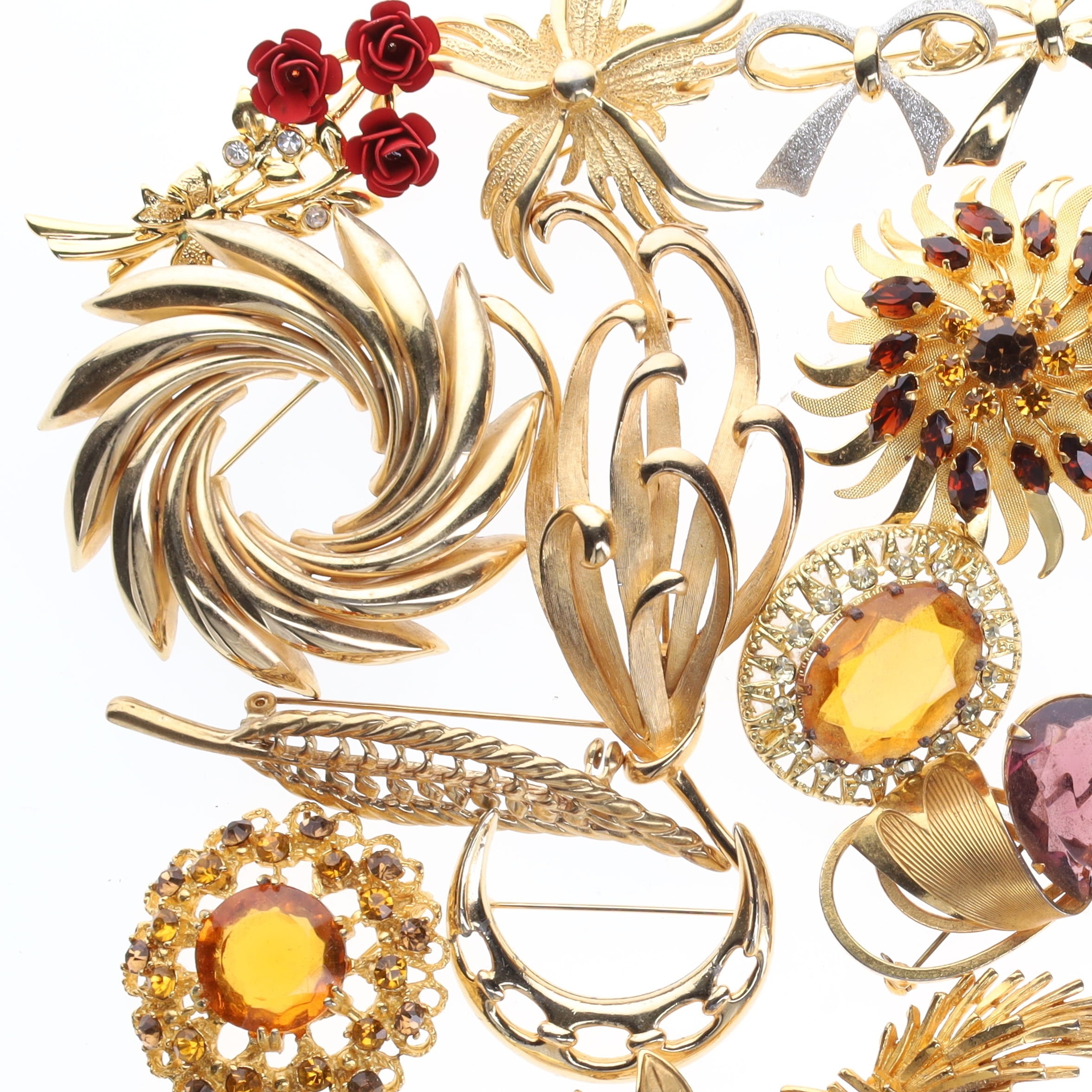 Assorted Gold Tone Costume Brooches