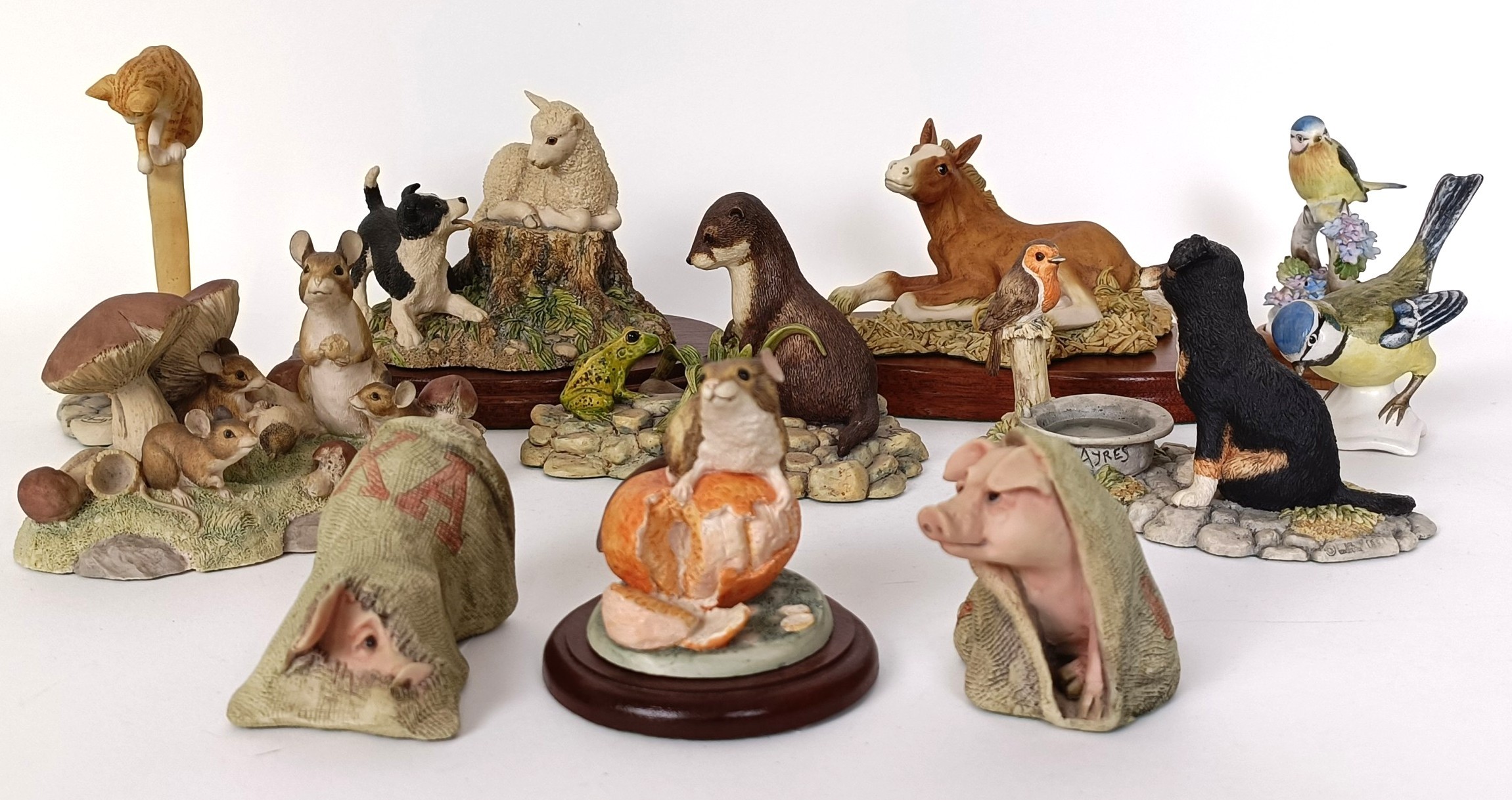 A Border Fine Arts group, Puppy & Robin, EF16, another foal, JH17, seven others, a Royal Adderley blue tit, and a Goebel blue tit (11)