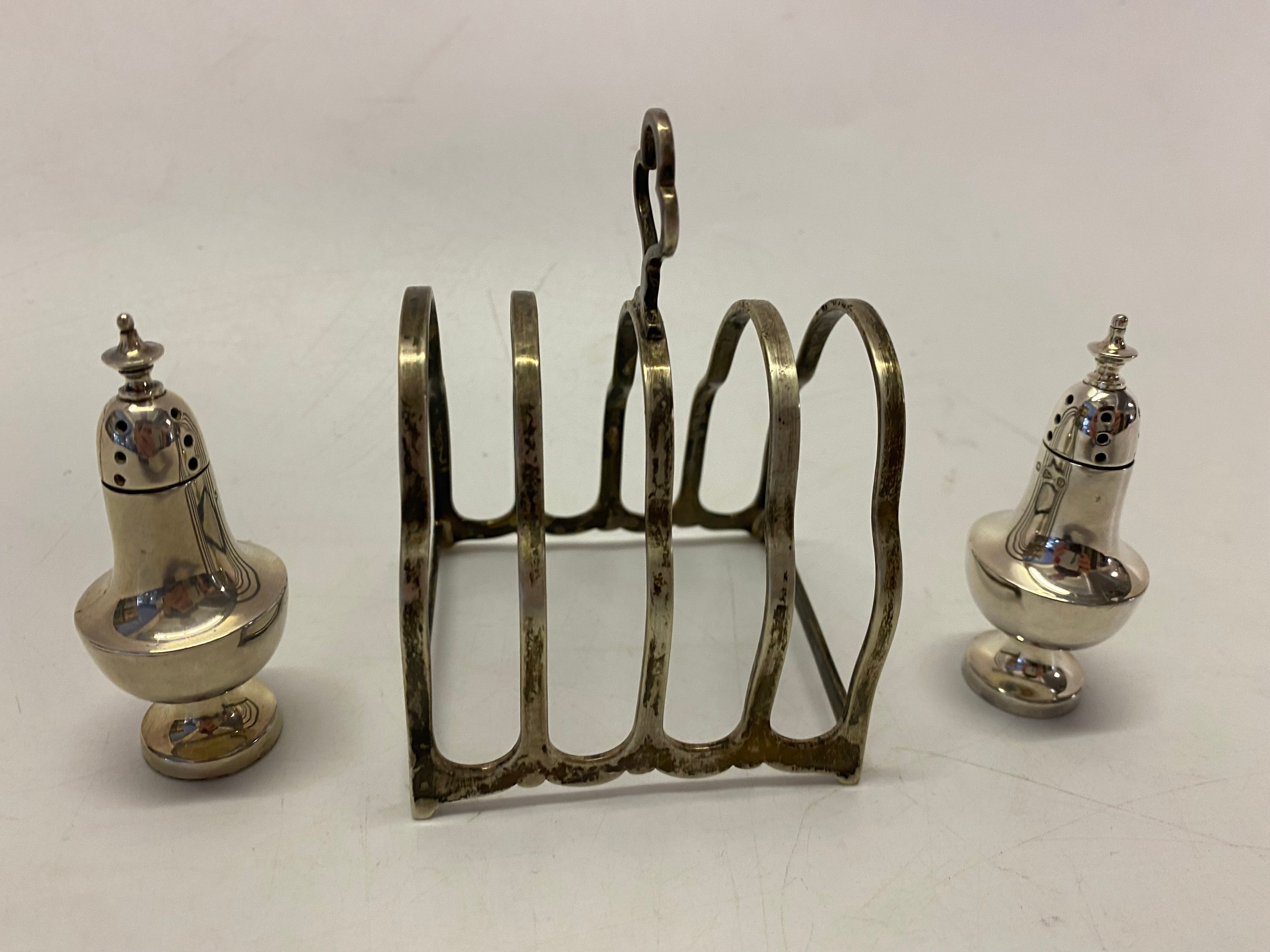 A small silver four division toastrack and a pair of silver ...