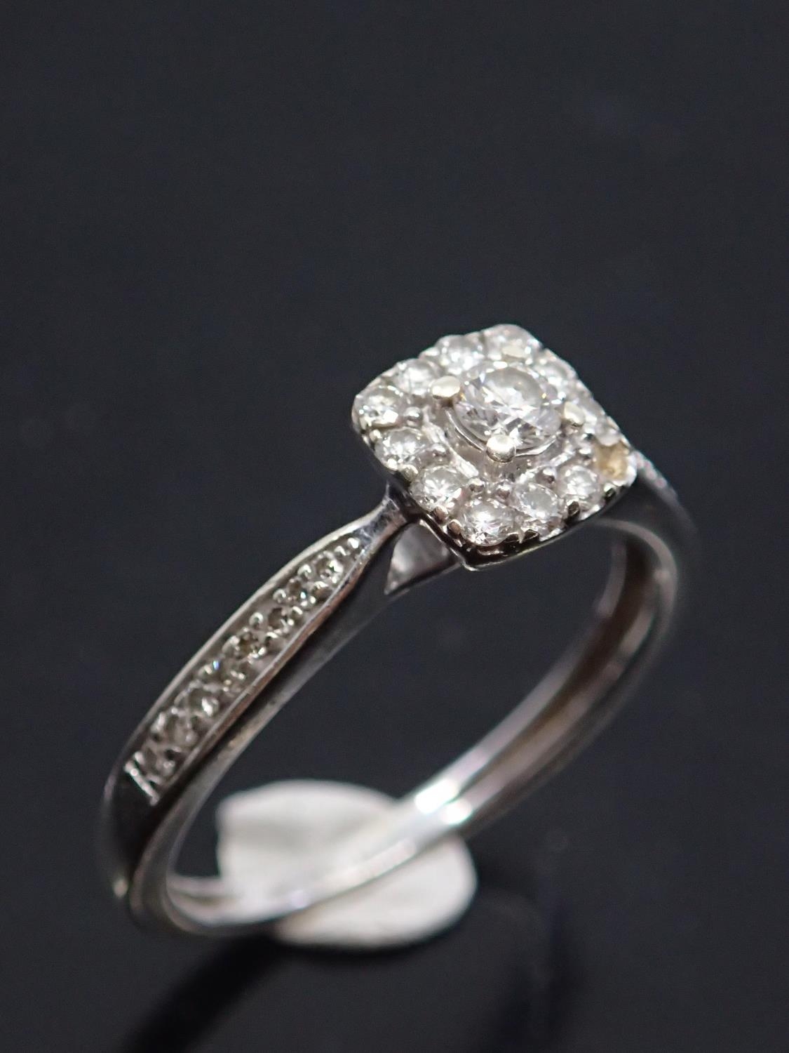 A diamond cluster ring set in 9ct gold, total estimated weight of diamonds 0.25cts finger size I 1/2 (missing one diamond)