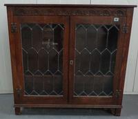 Dark Stained Side Cabinet with 2 quarter panelled doors, 2 frieze drawers with hammered metal fittings