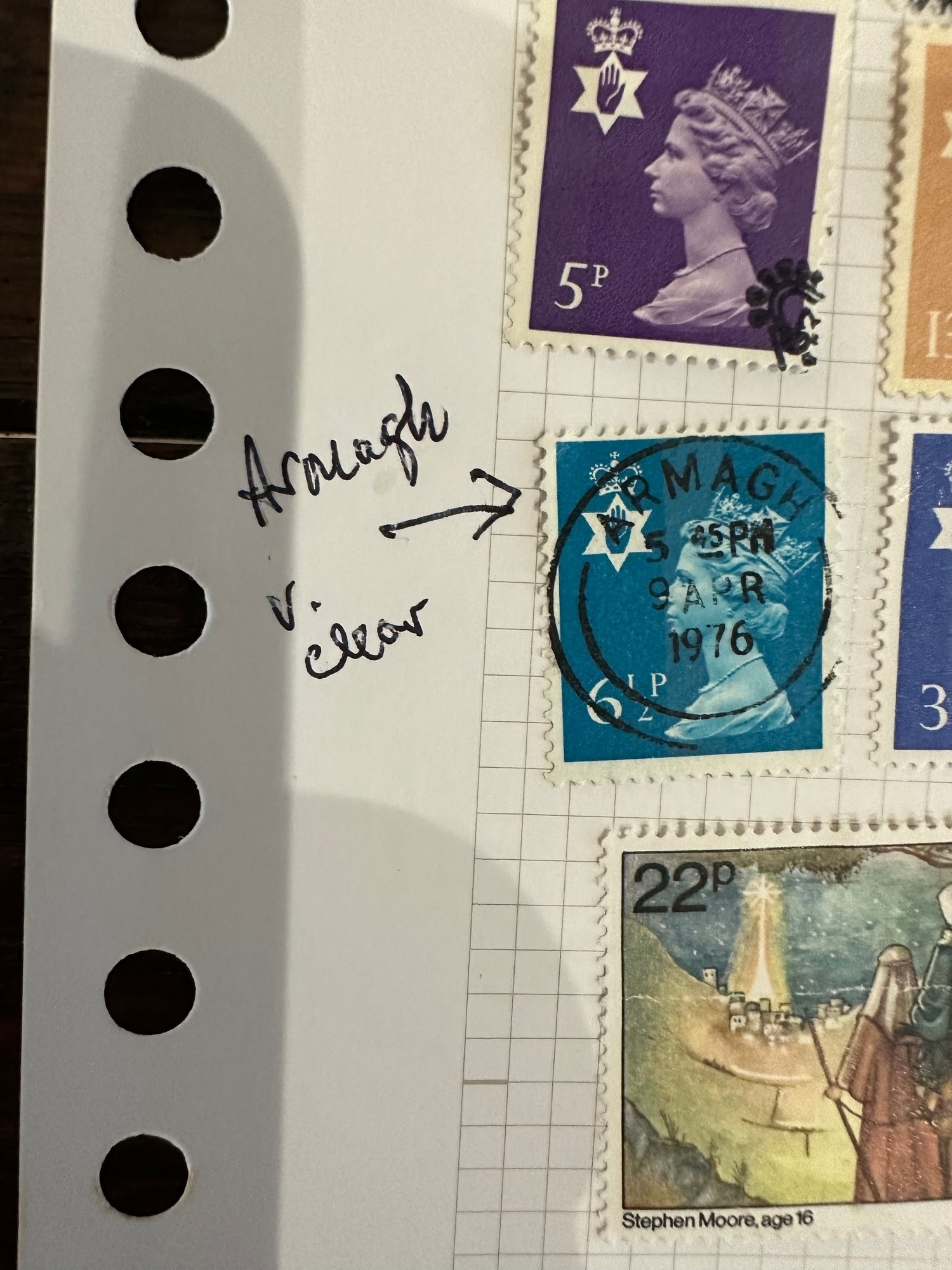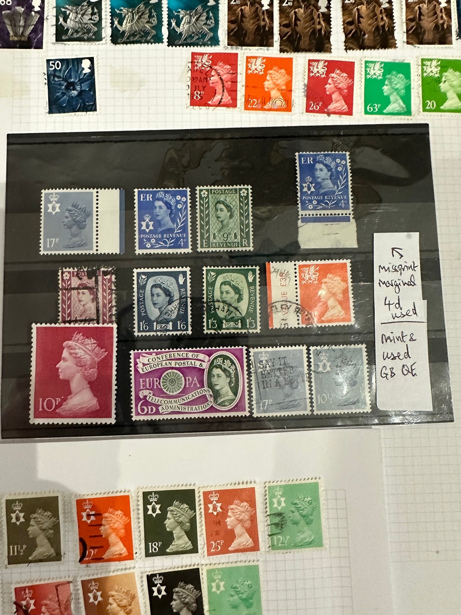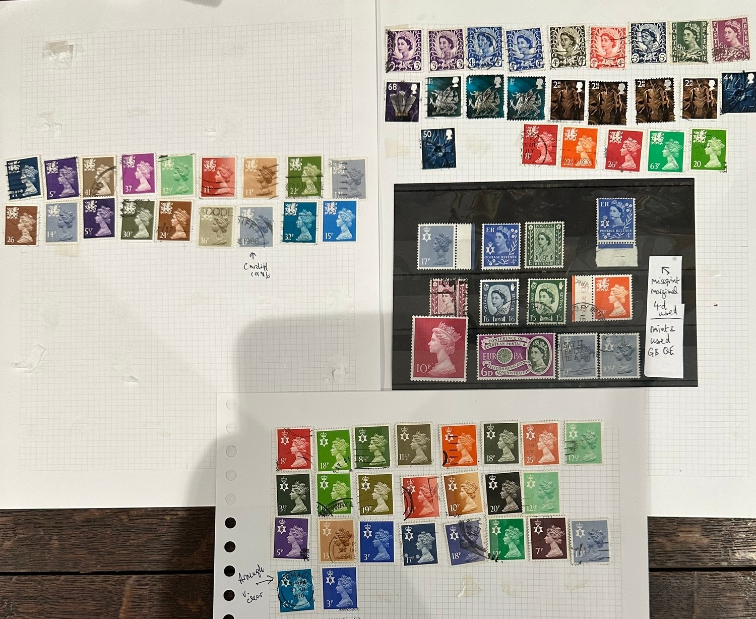 UK GB Regionals Wildings and Machin stamps, Northern Ireland and Wales with Armagh ( very good cancel ) and Cardiff cancels. Marginal misprint