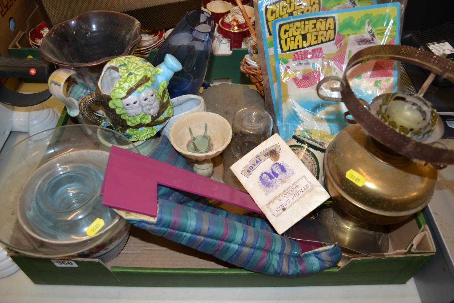 BRASS OIL LAMP, 1935 ROYAL WEDDING SOUVENIR, QUANTITY OF CHINA, ETC