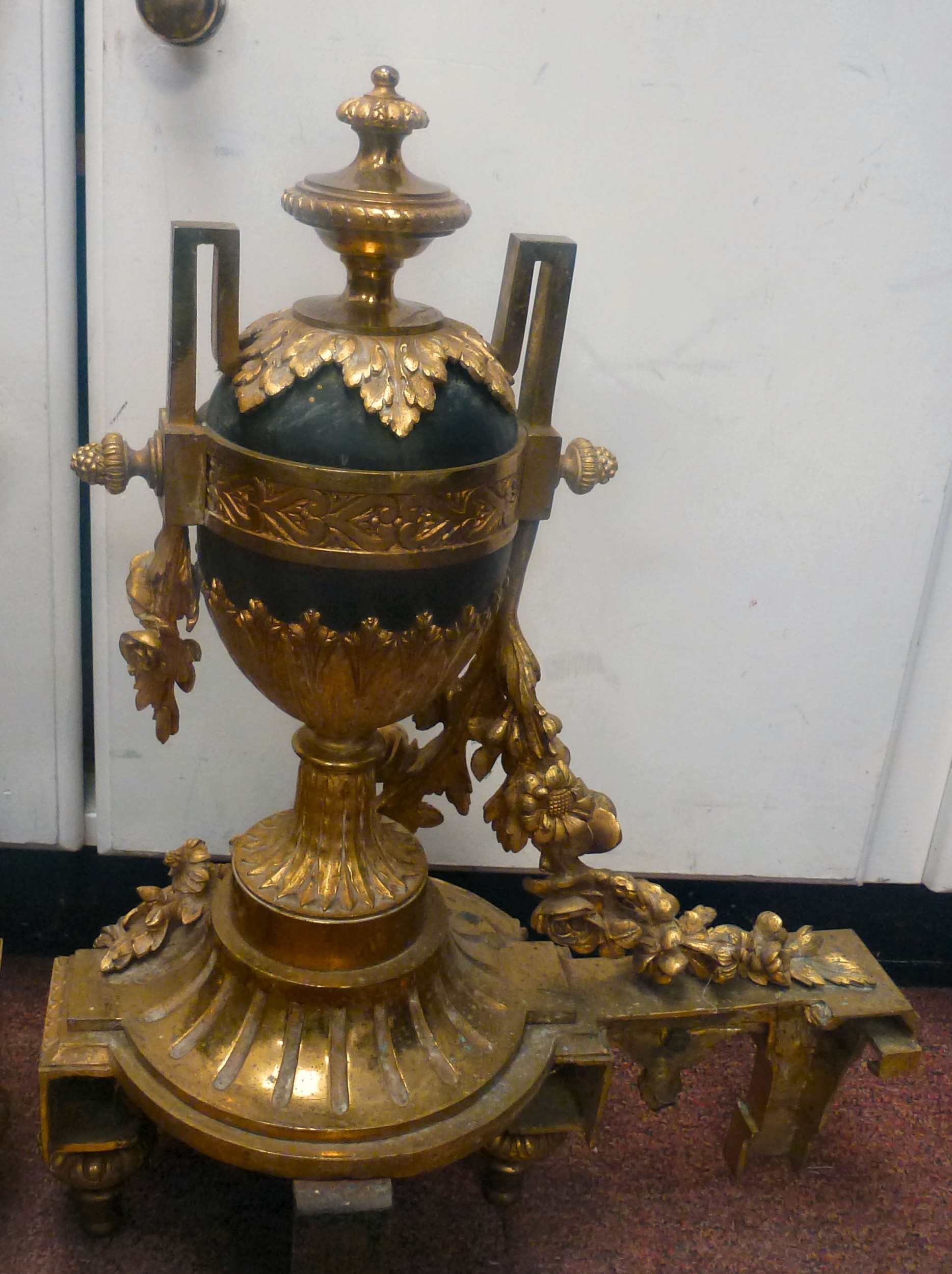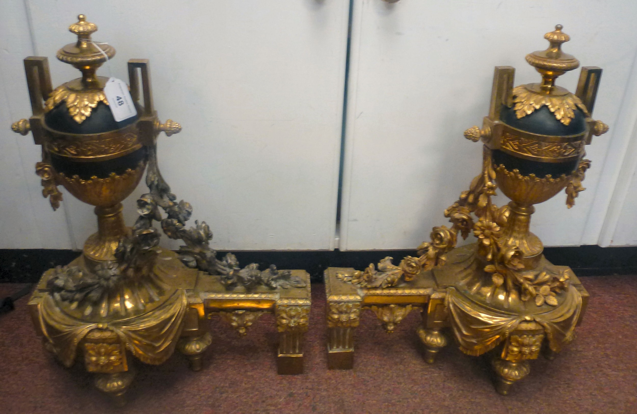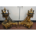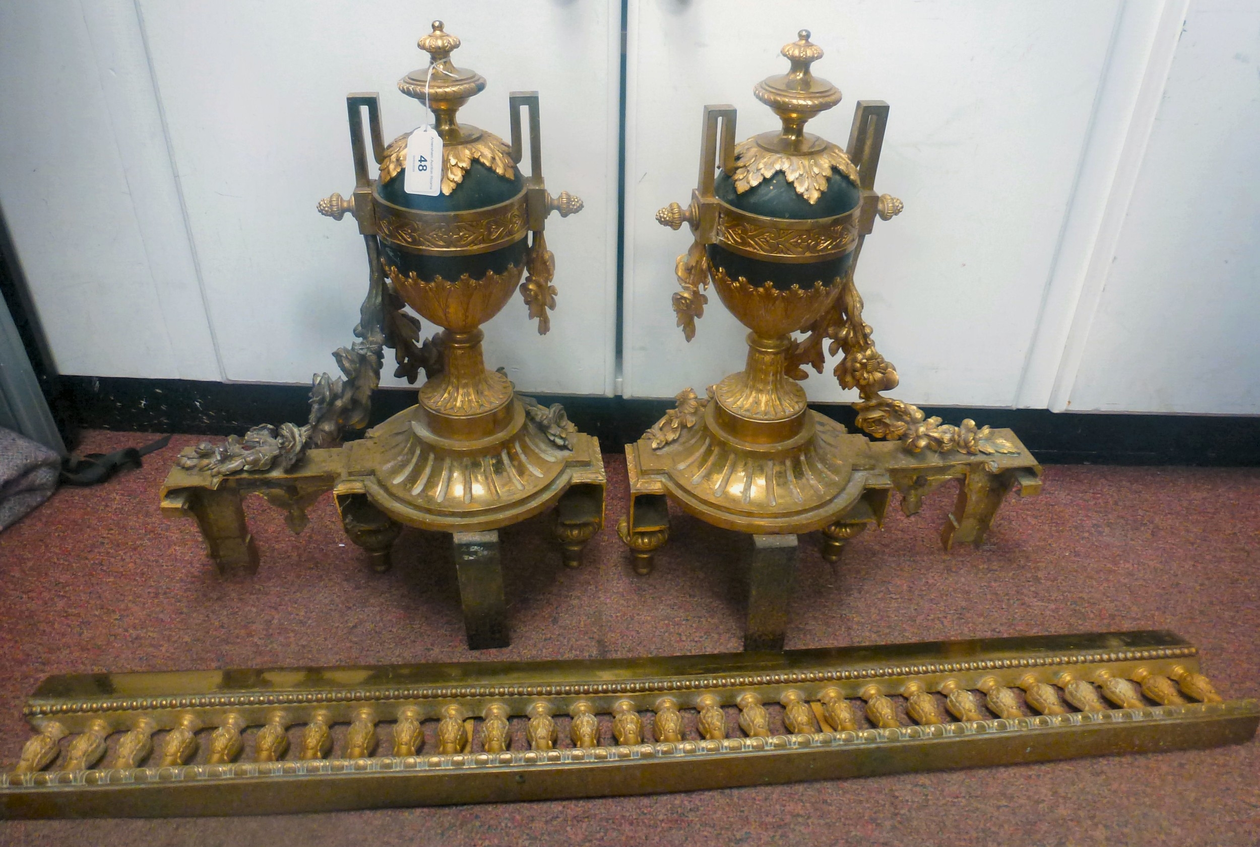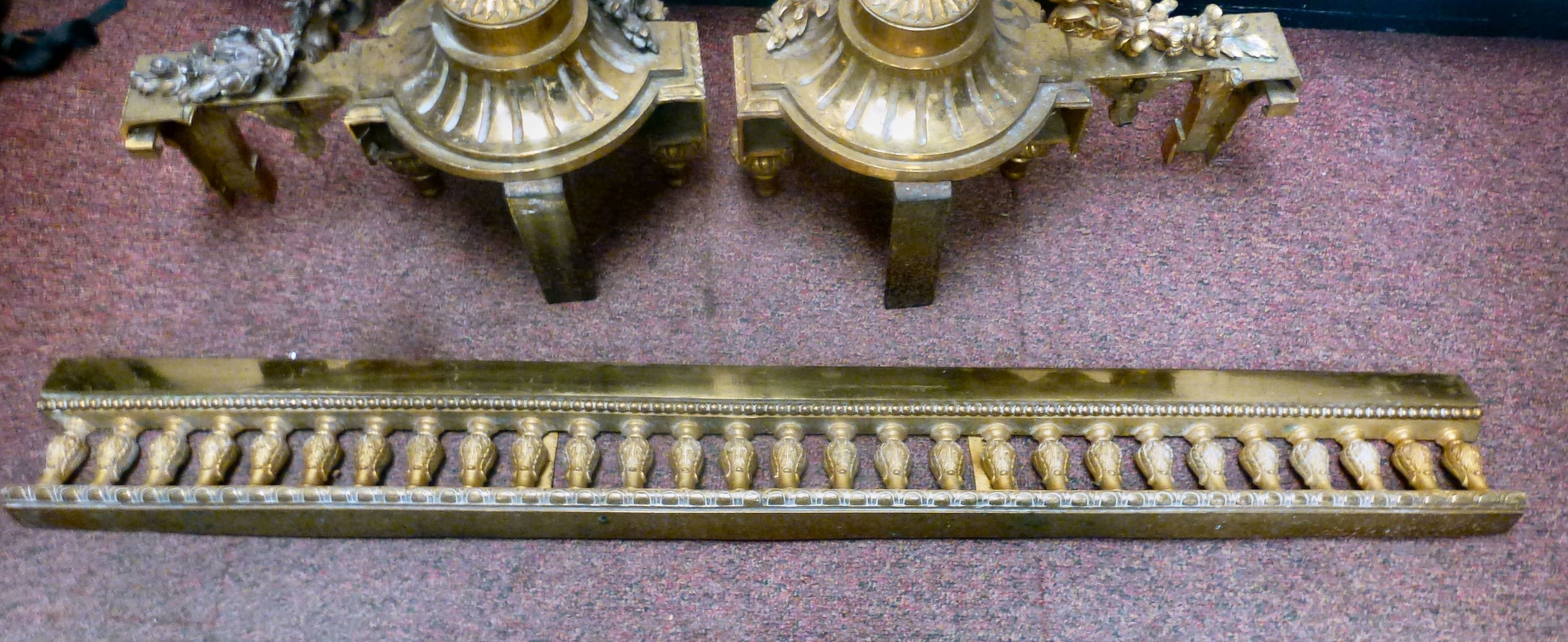 A pair of late 19thC French cast brass andirons 19"h with a separate centre bar