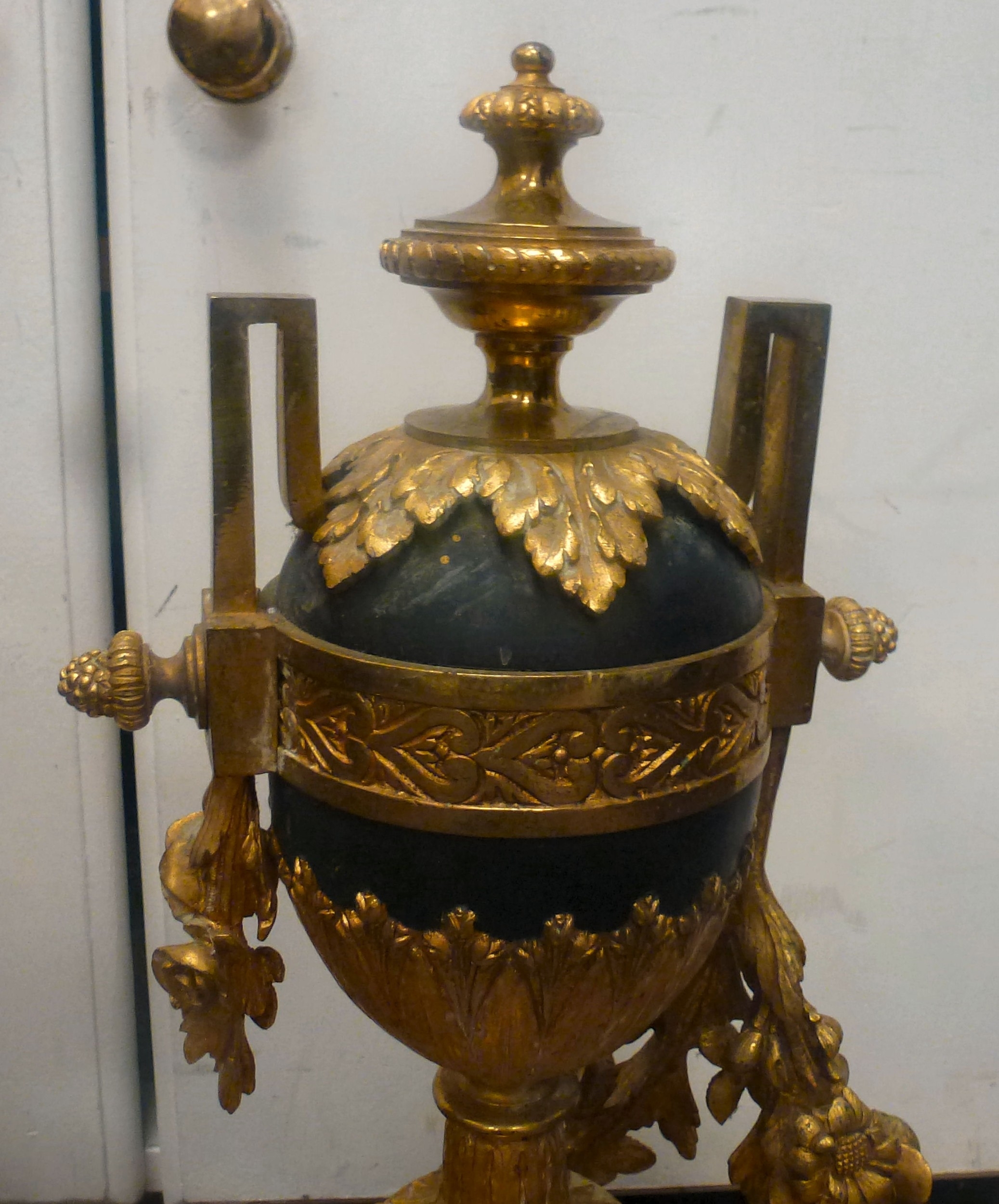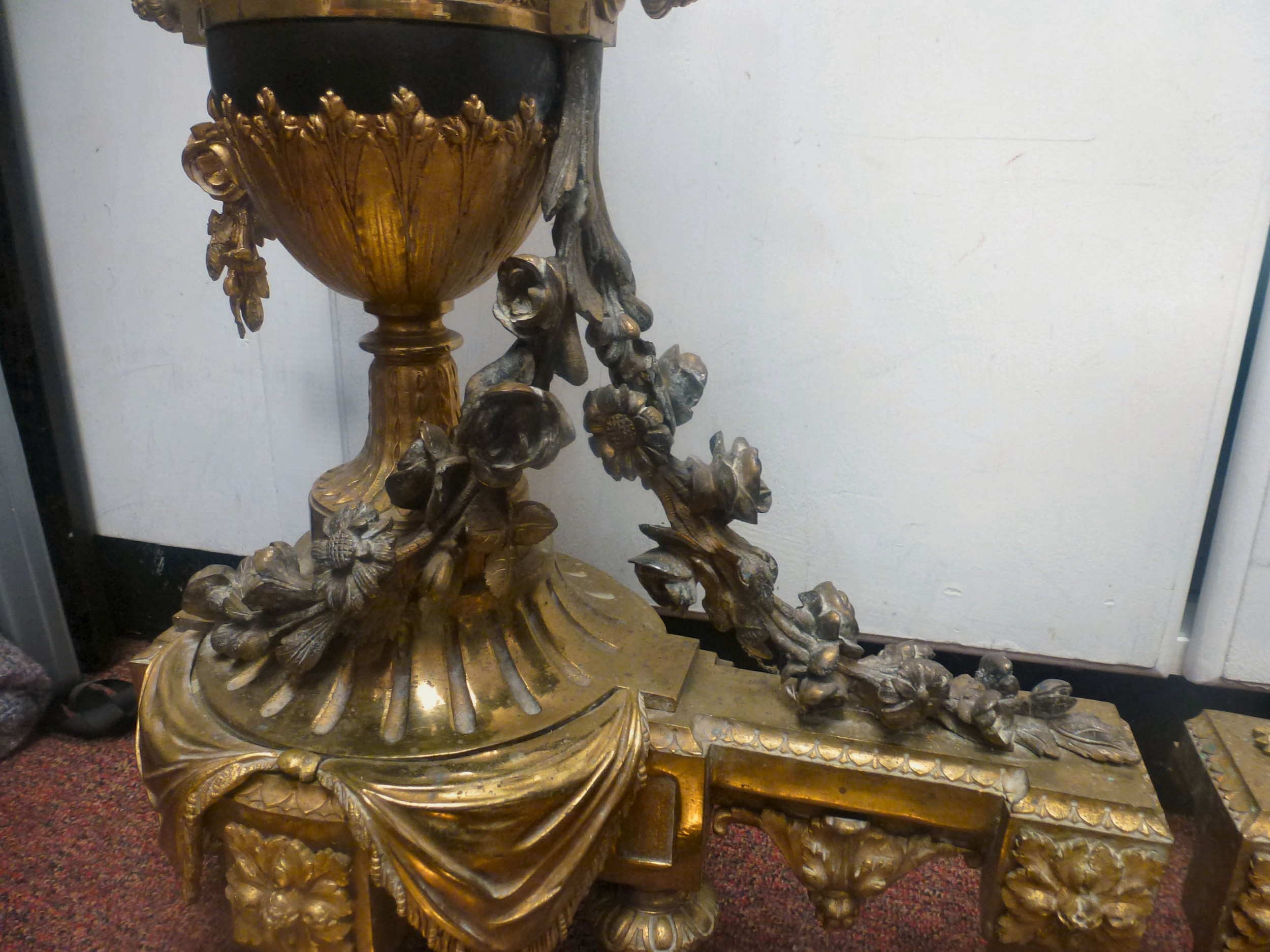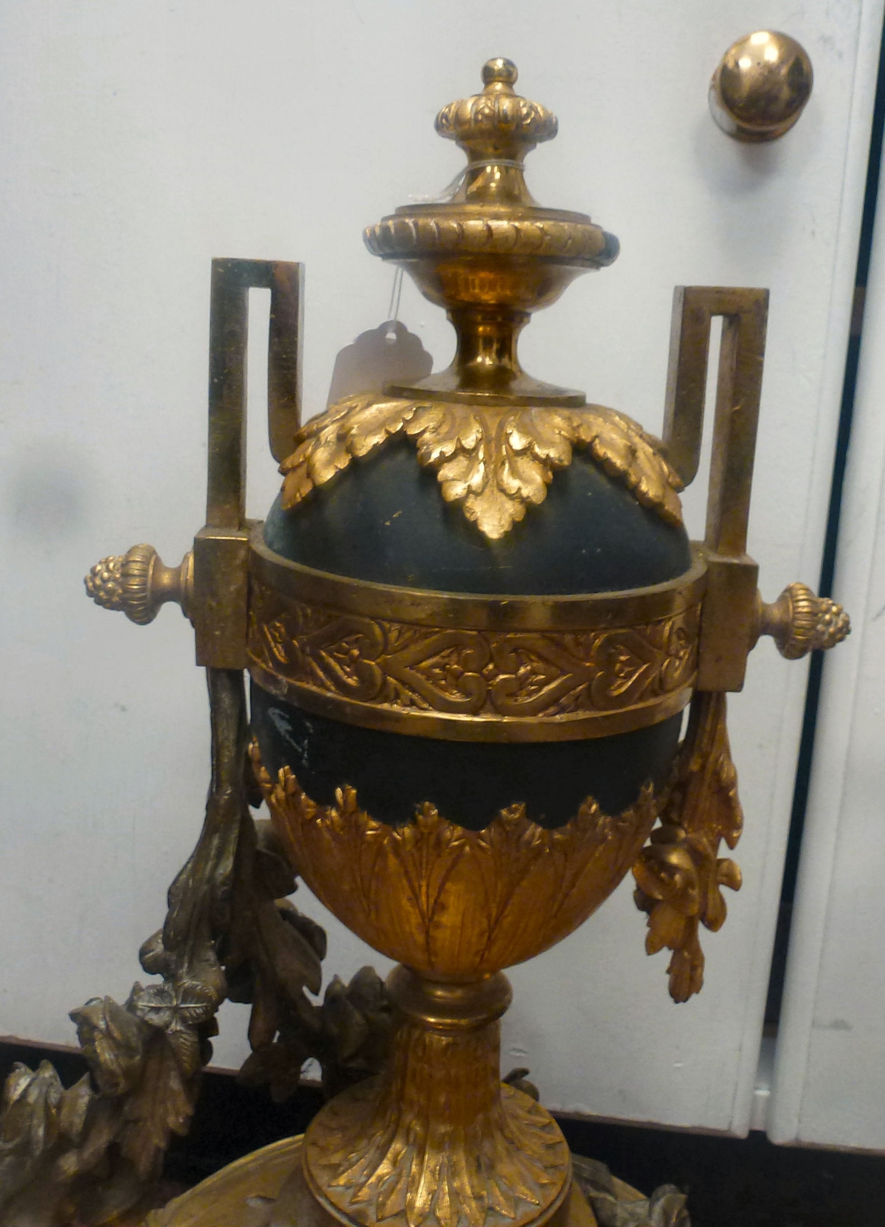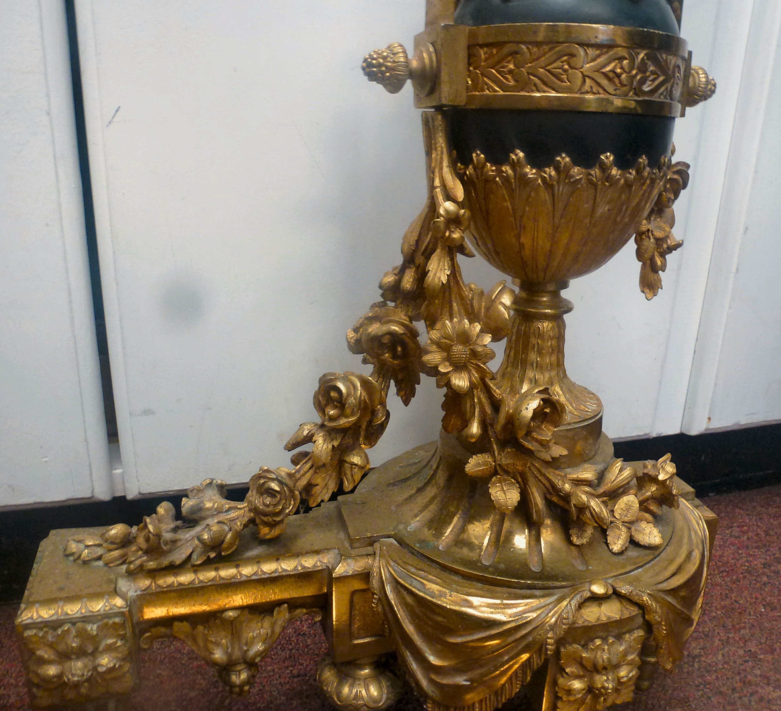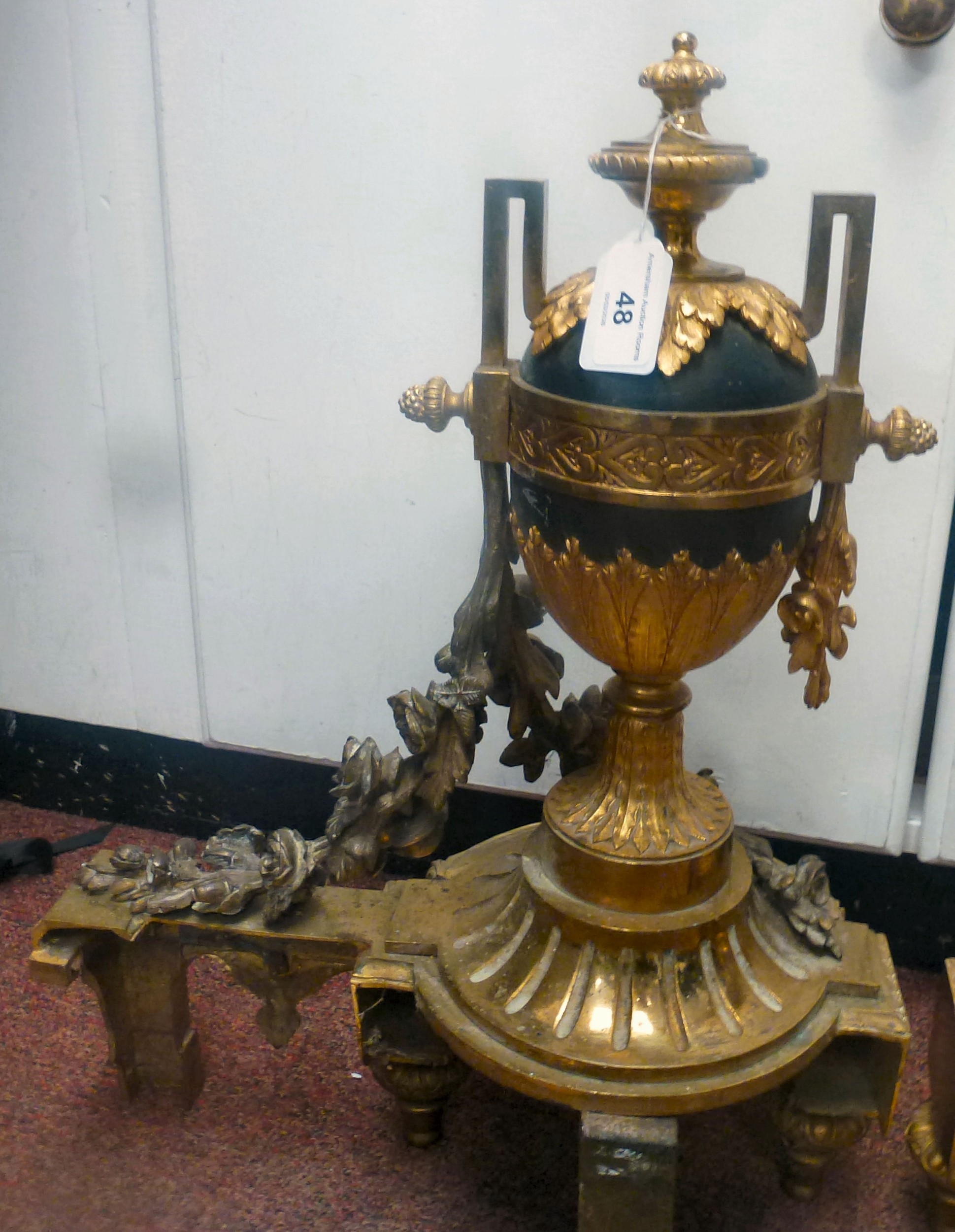 A pair of late 19thC French cast brass andirons 19"h with a separate centre bar
