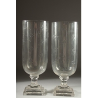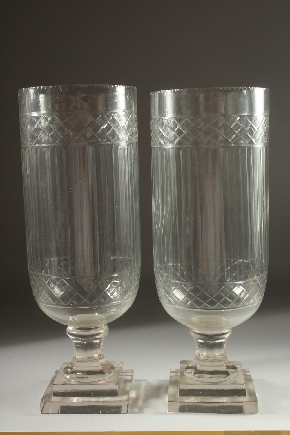 A PAIR OF STORM LAMPS on square bases. 16ins high.