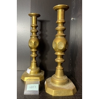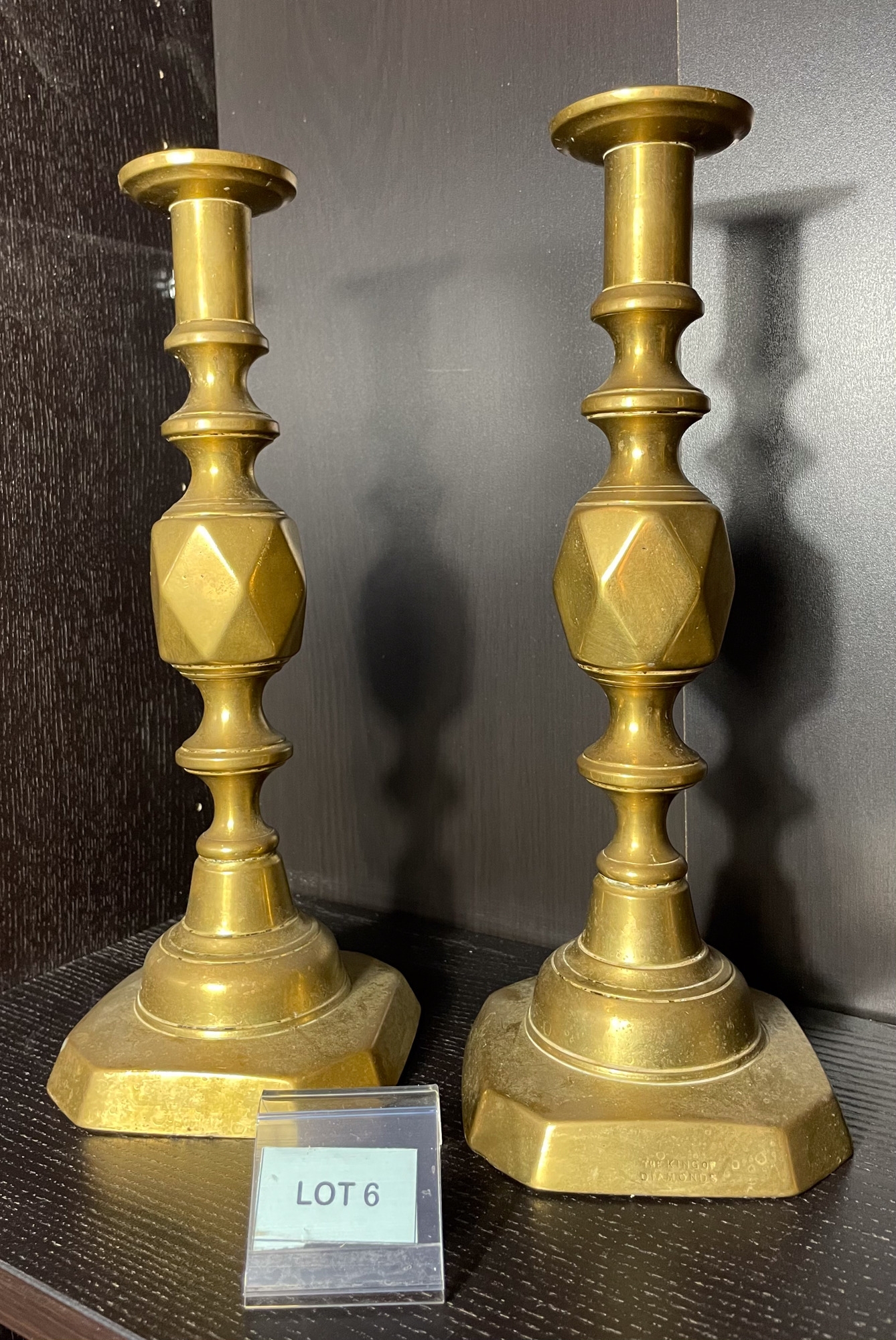 Pair of brass 'King of Diamond' candlesticks