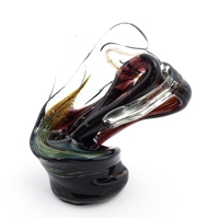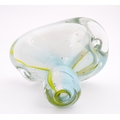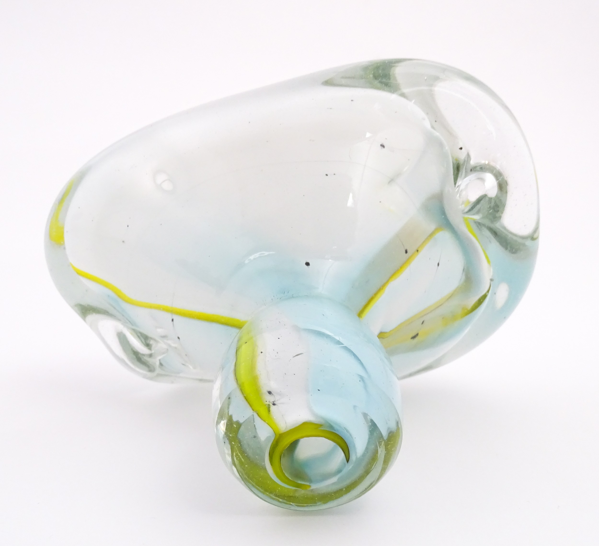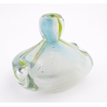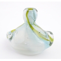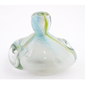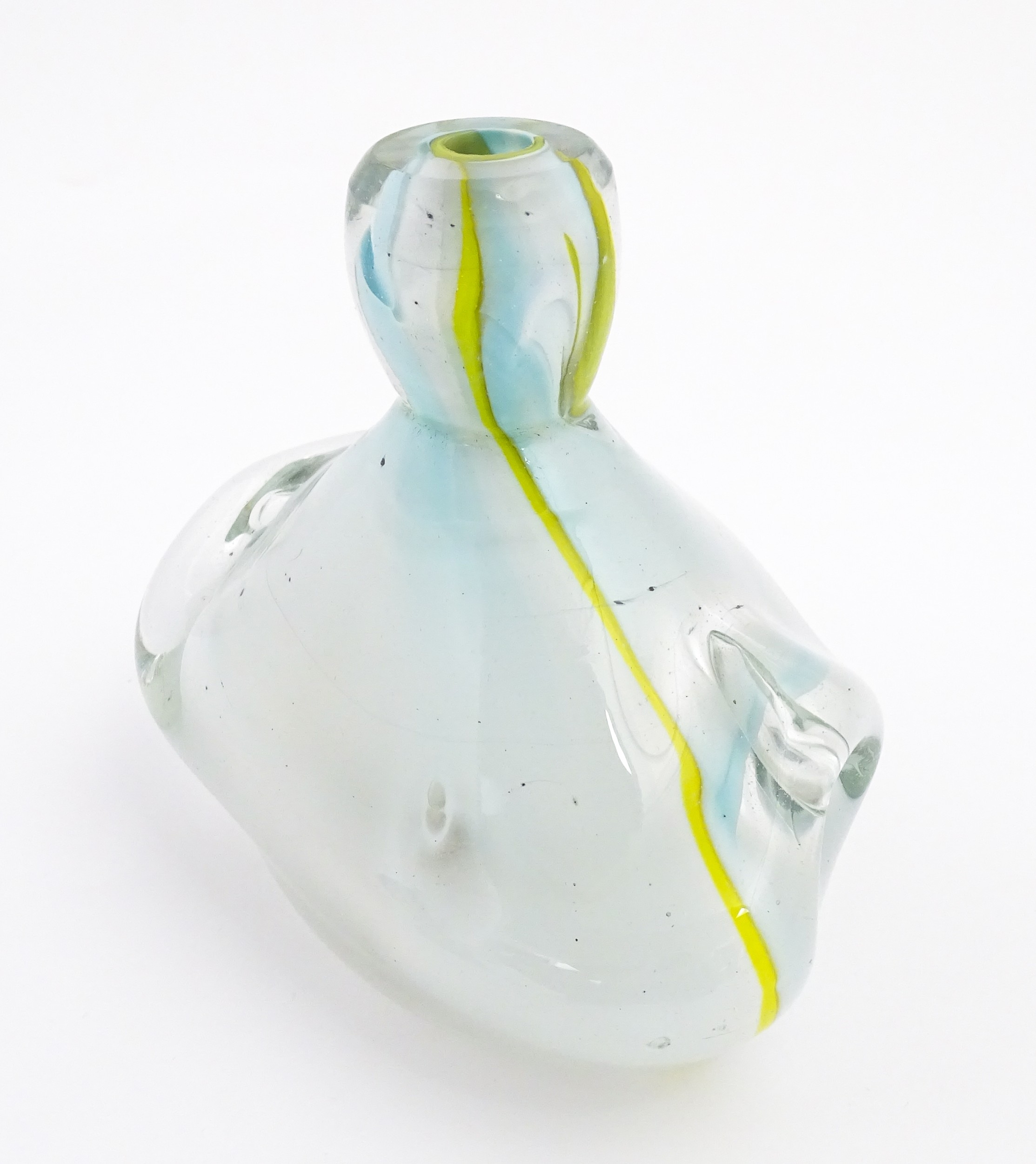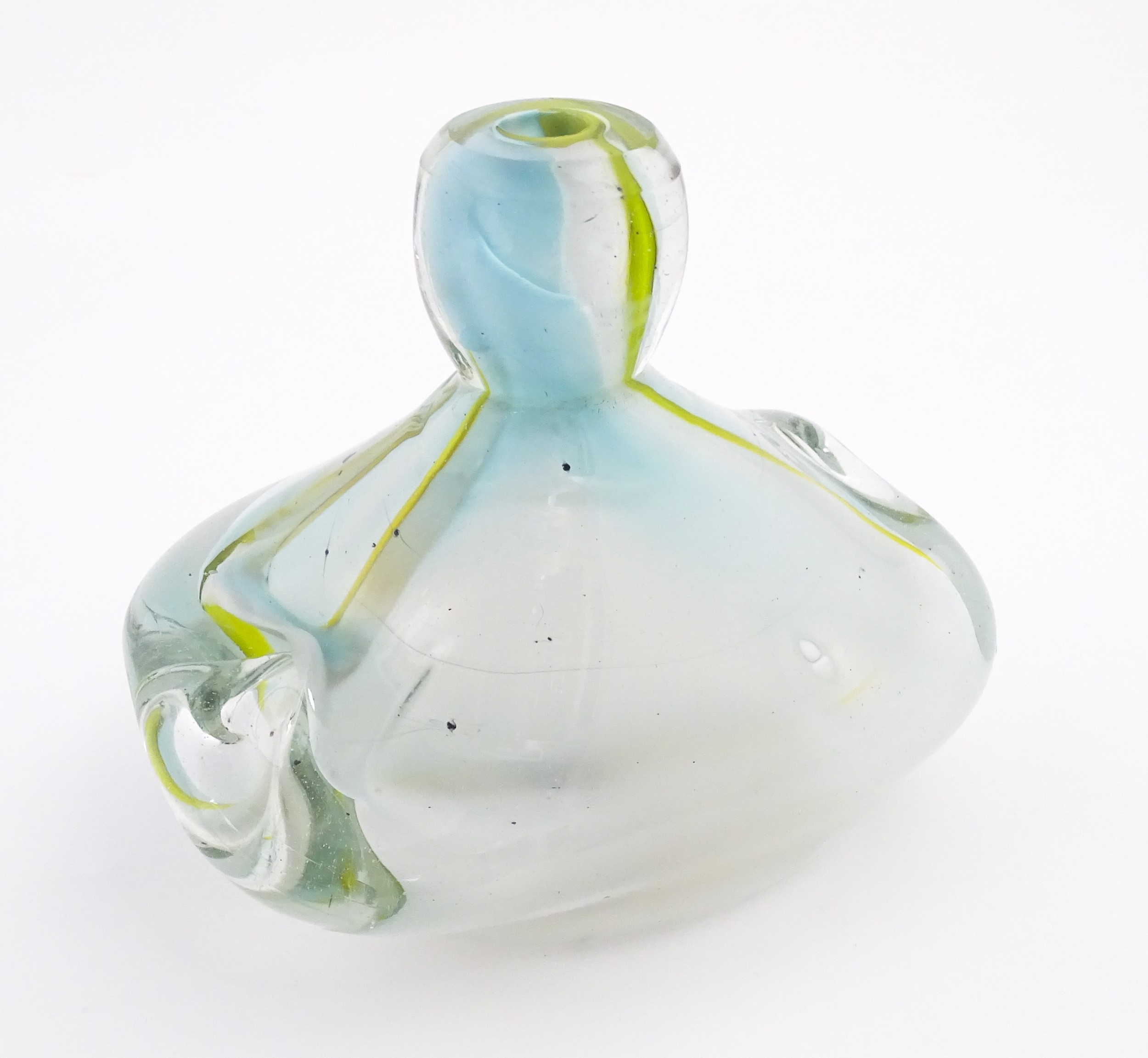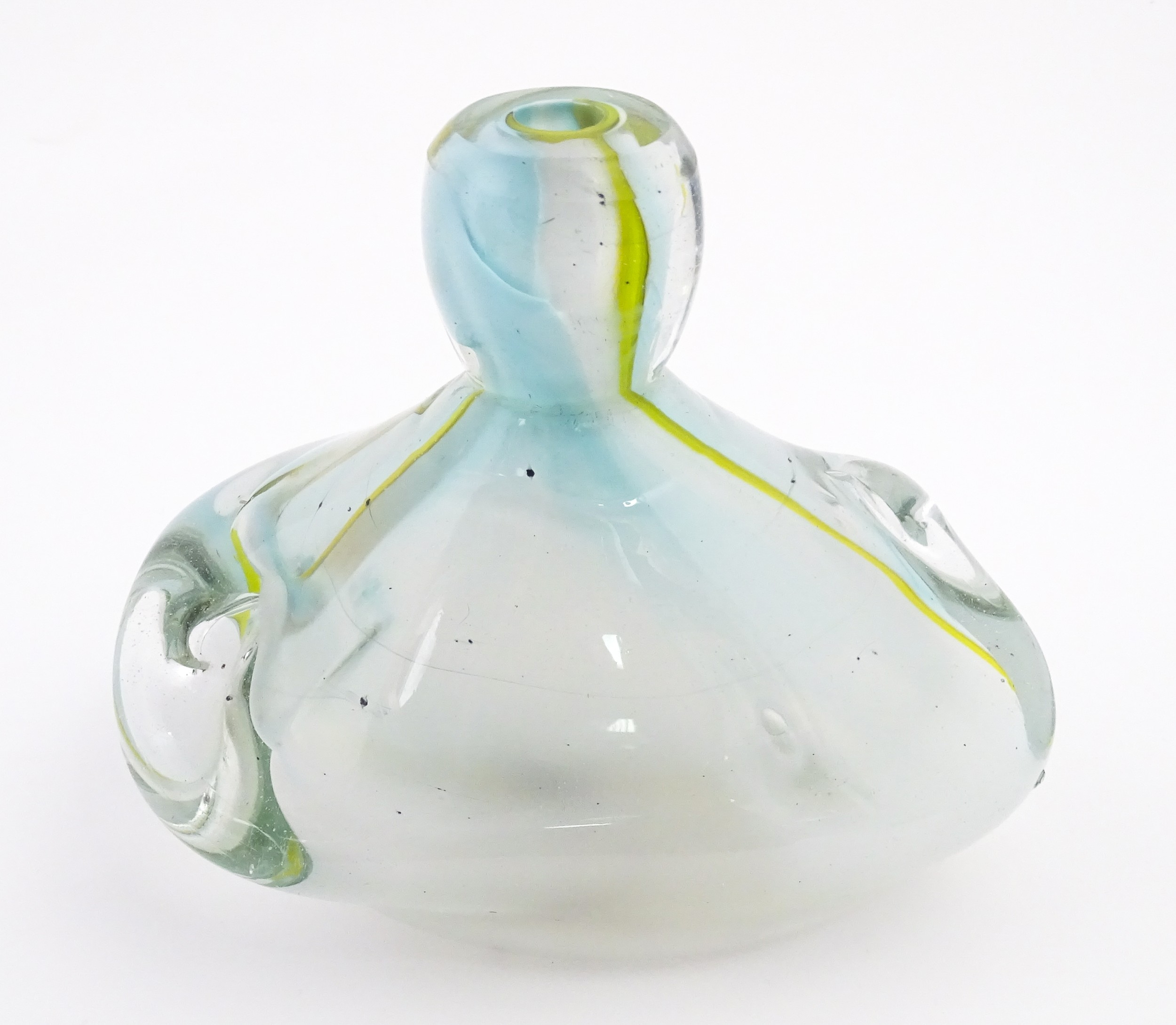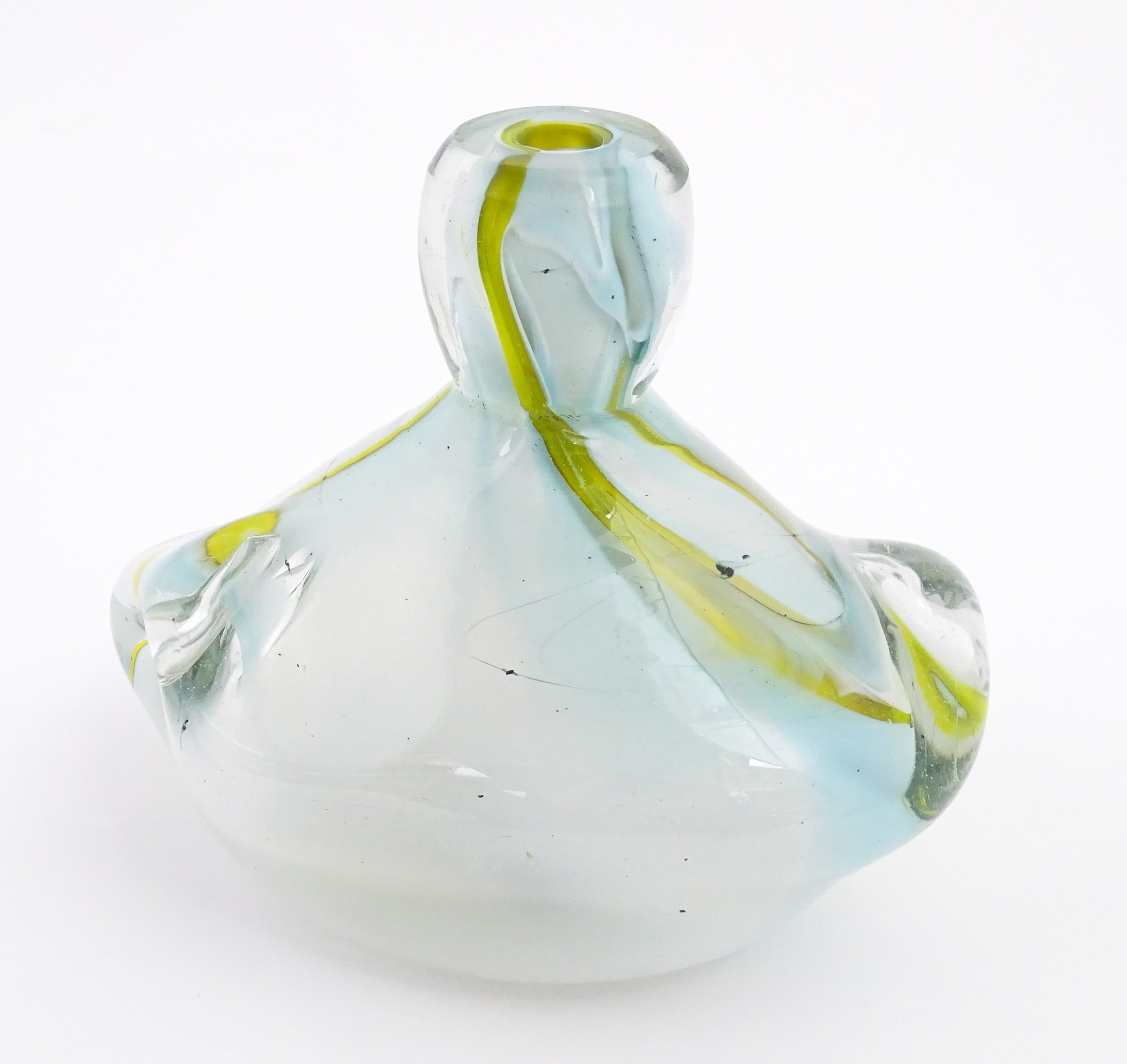 Michael Harris (1933-1994) : A glass vase of compressed form opaque white glass with yellow striations, cased in thick irregular clear glass. Etched under ' MH RCA 66 ' For Michael Harris, Royal College of Art, 1966'. Approx 7" high