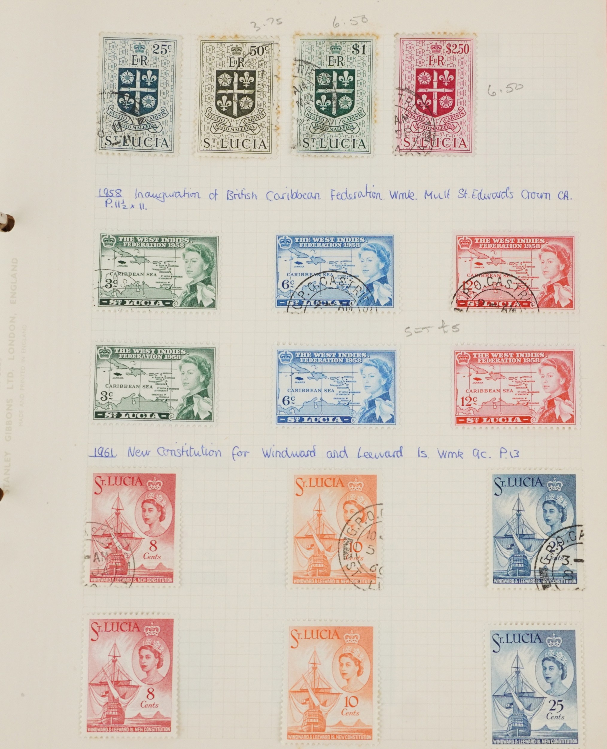 19th century and later Commonwealth stamps in mint and used condition including Virgin Islands, British Guyana, Trinidad & Tobago, Jamaica and St. Lucia, housed in a red ring binder.