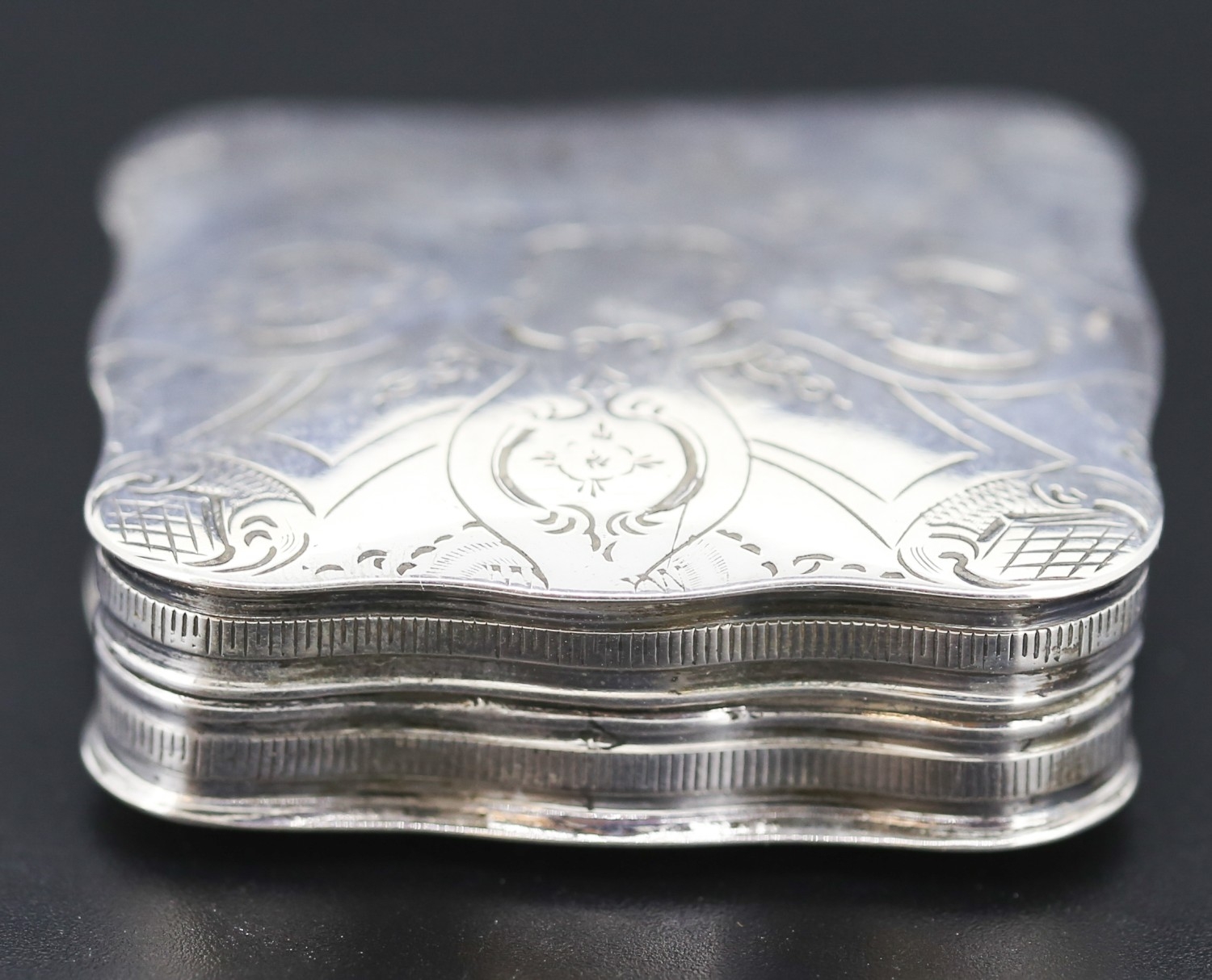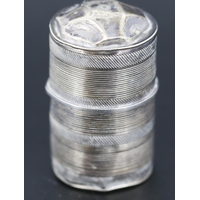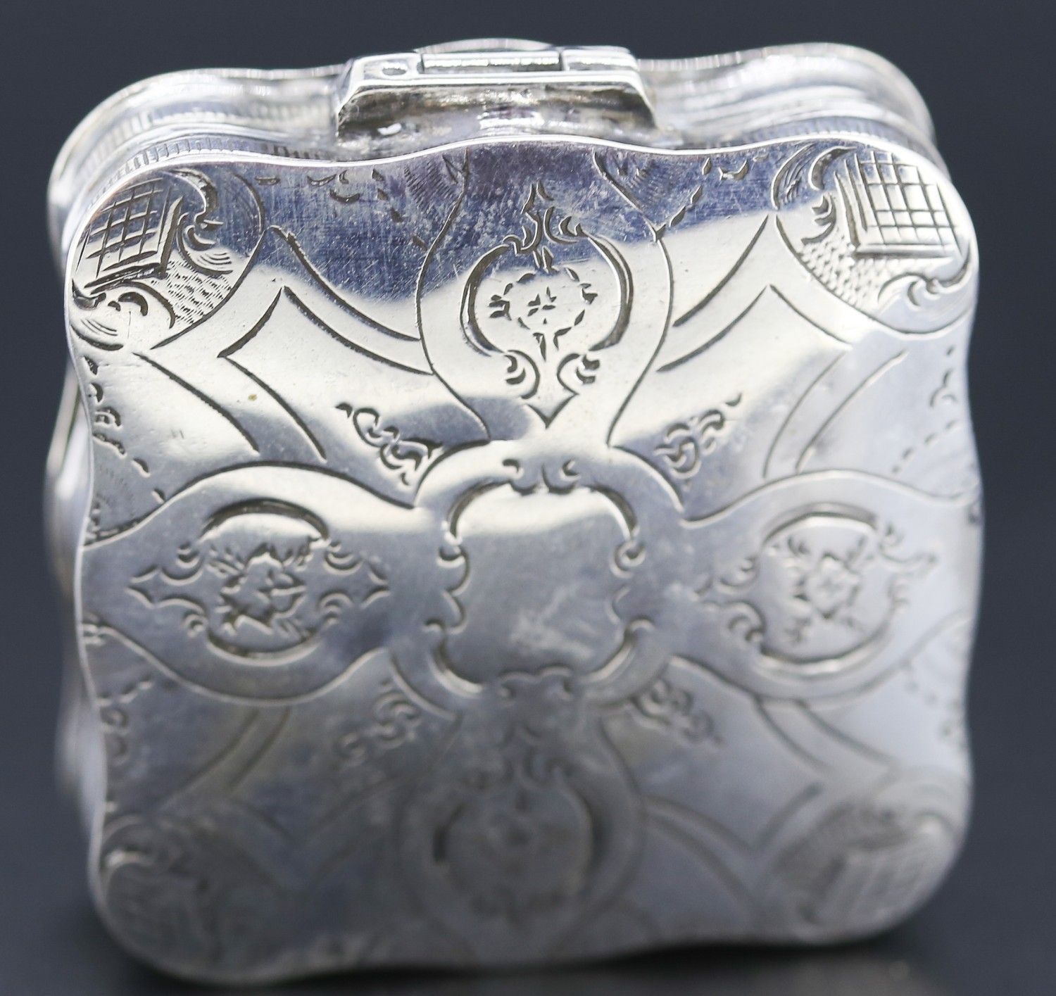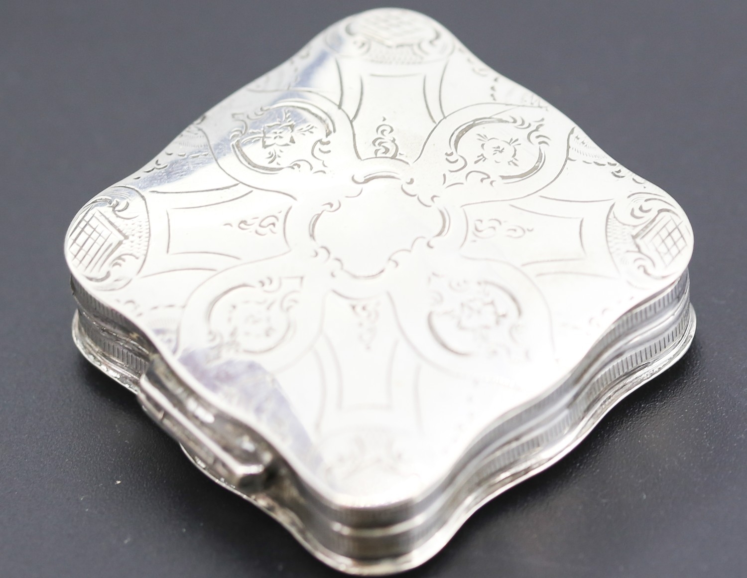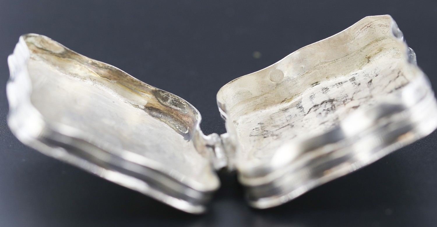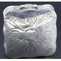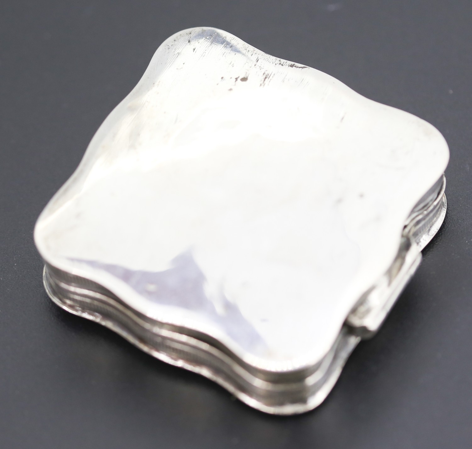 Silver Cushion Form Pill Box Incised Detail Hinged Cover 4.5cm by 4.5cm