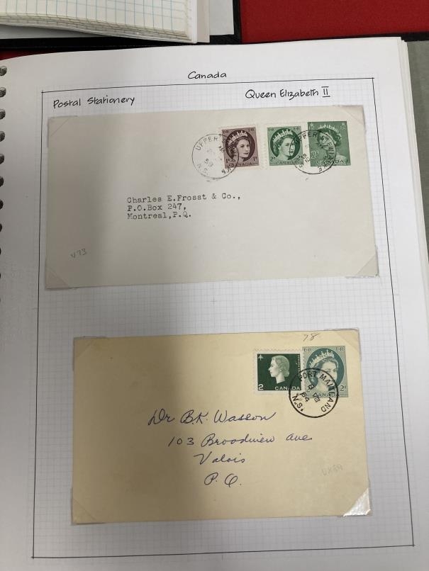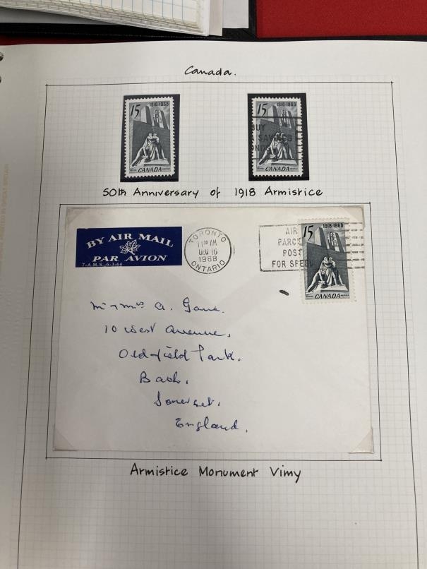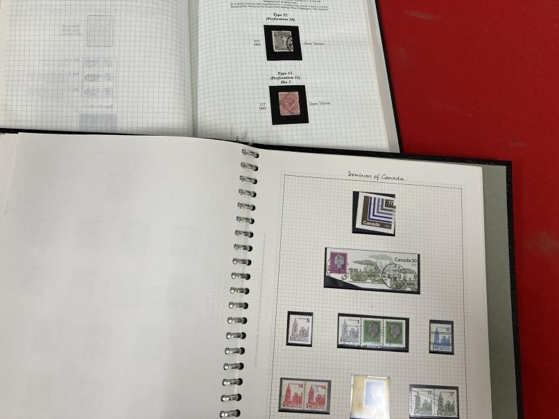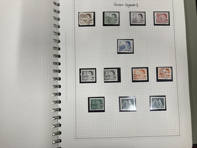 Stamps: Home produced album of New Zealand stamps, low value definitives and special commemoratives from 1889 - 1996. Plus a looseleaf album of Canadian postage stamps 1920 - 1980s, both albums mainly used but some mint NH examples.