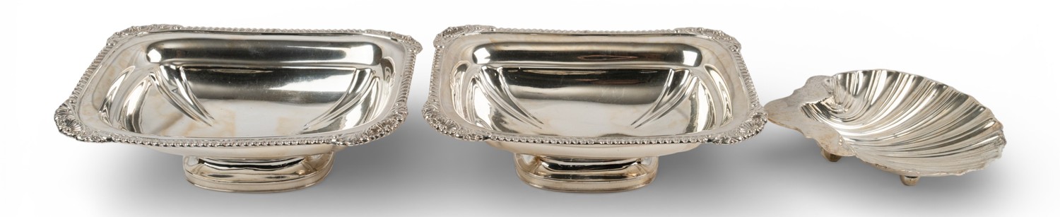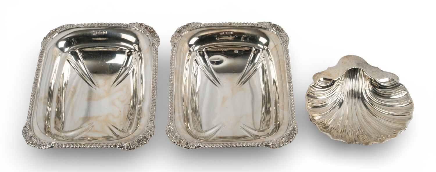 [a] Victorian, One shell-shaped silver three-footed dish with 'Josiah Williams & Co' maker's mark. Hallmarked London, 1894.