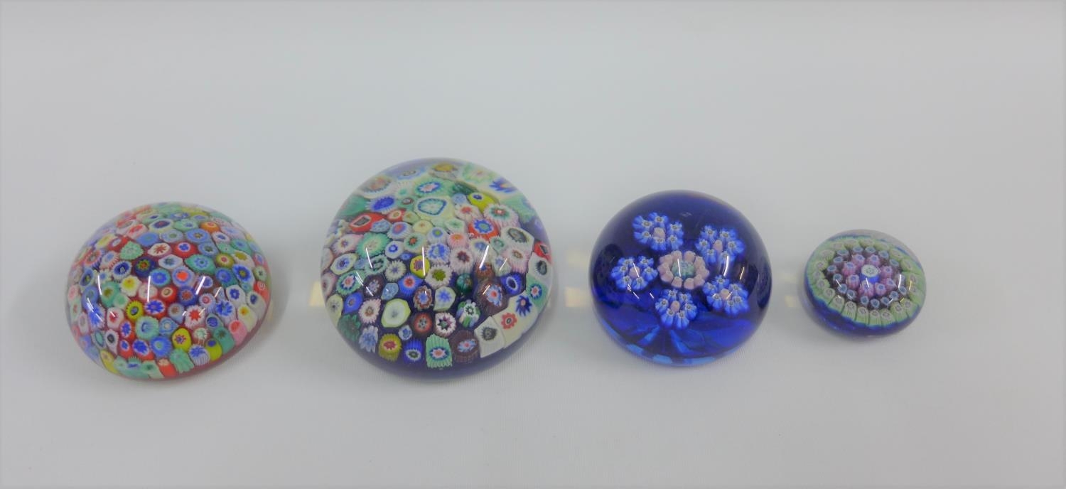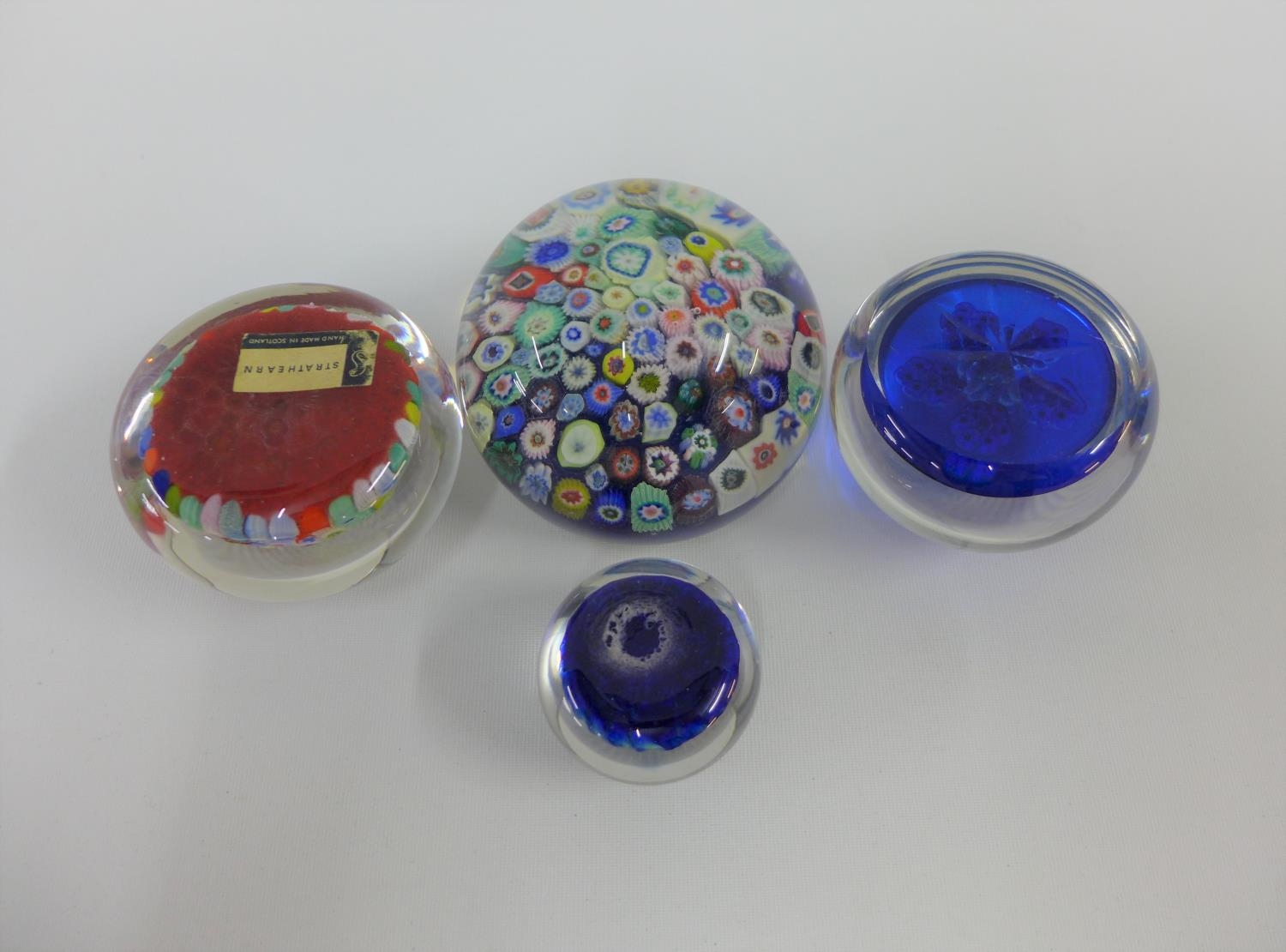 Collection of four millefiore paperweights to include Strathearn, etc, largest 8.5cm (4)