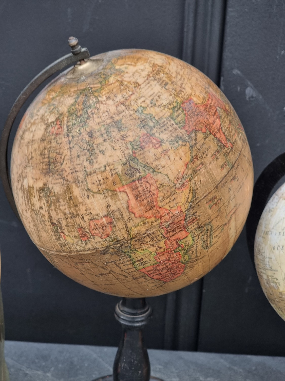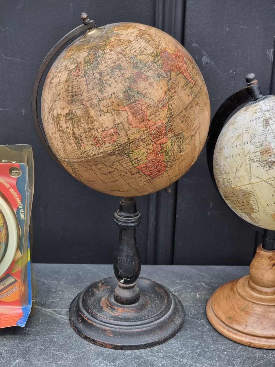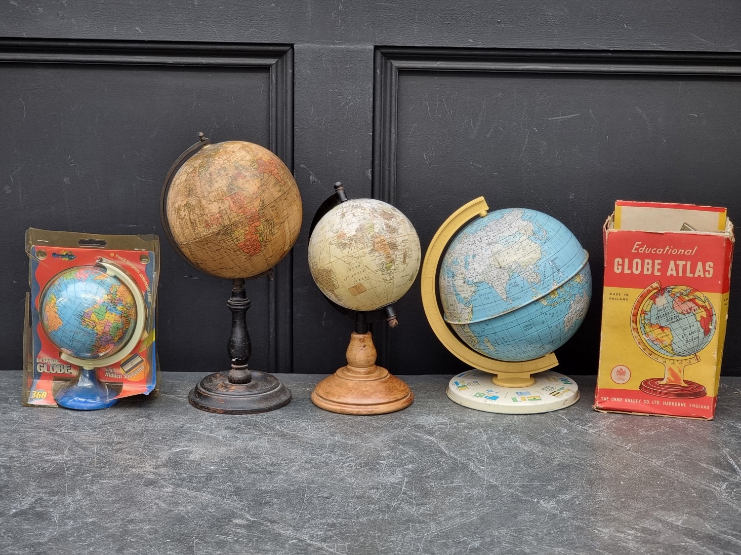 Five small table globes, to include a Geographia 6in example, 31cm high.