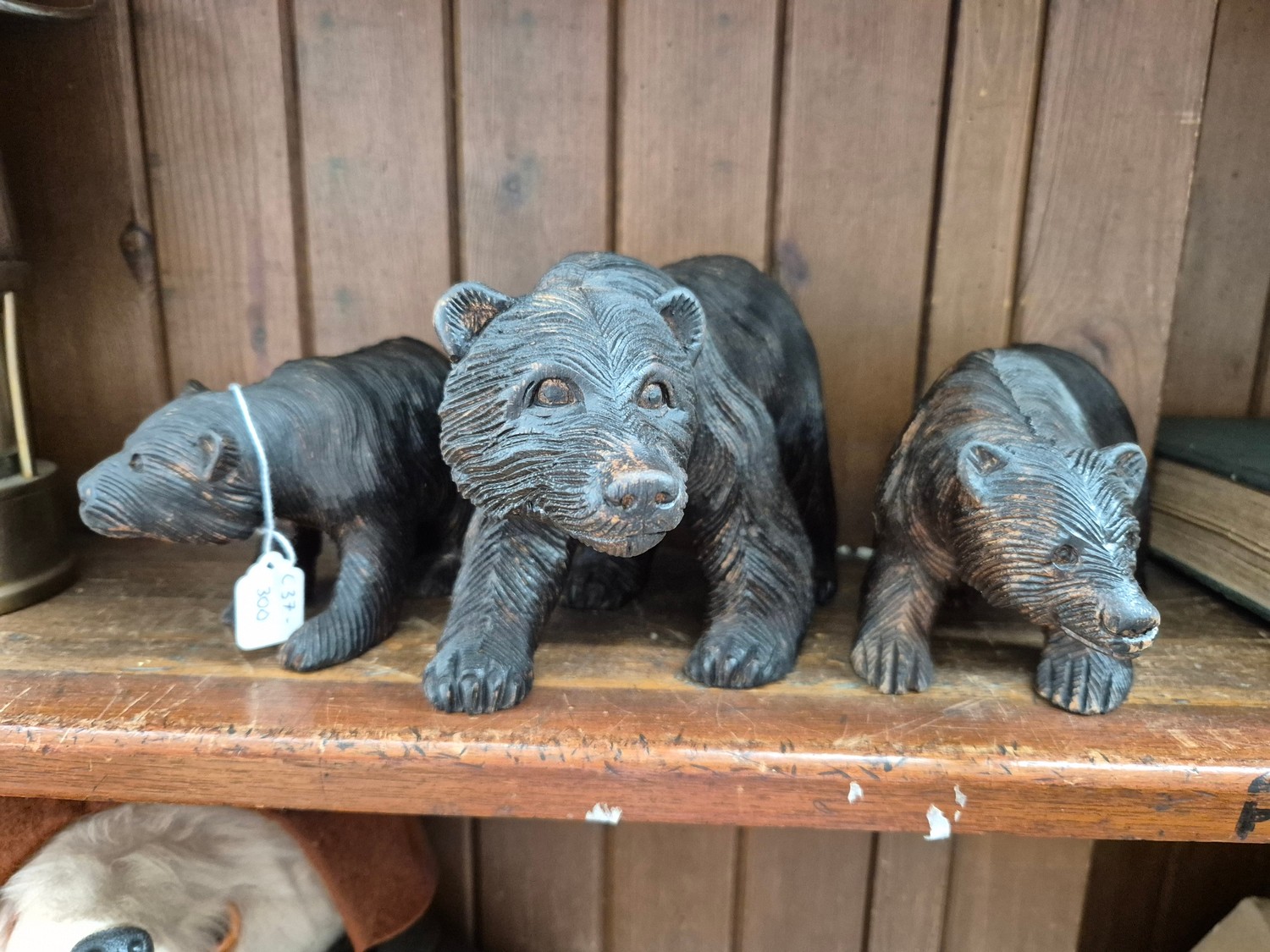 Three Black Forest carved wood bears.