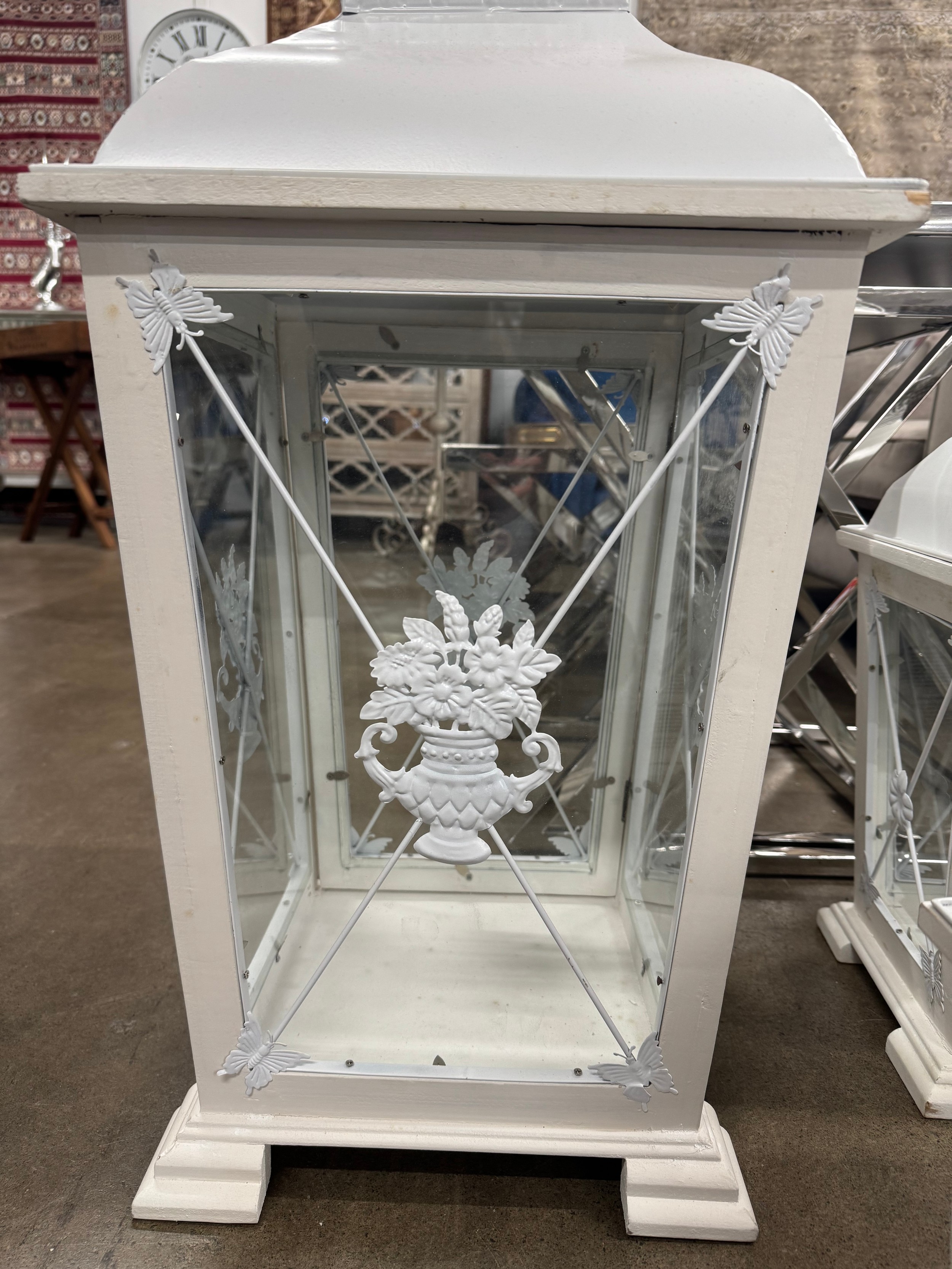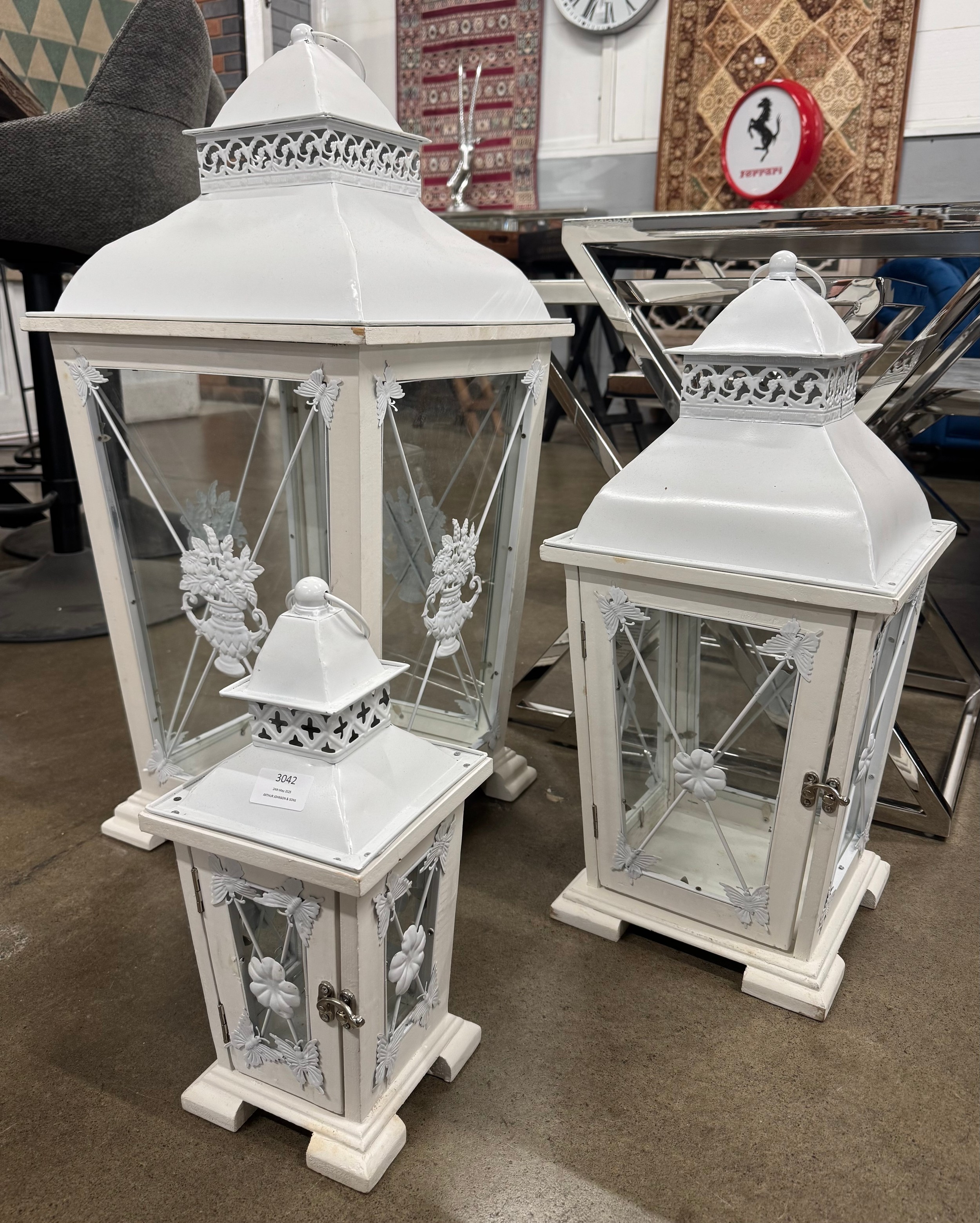 A set of three white graduated lanterns