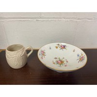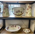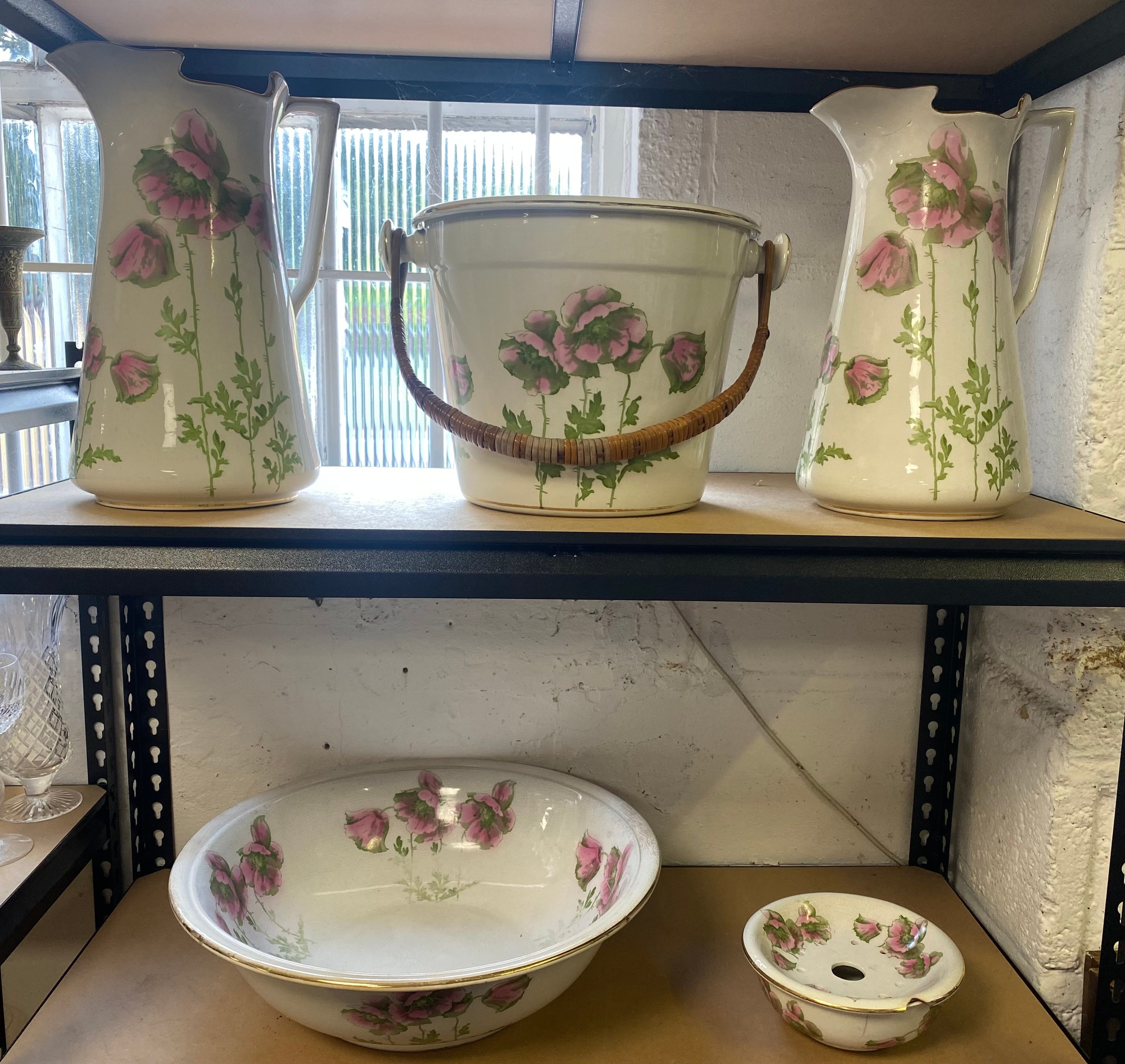A toilet set, each piece decorated with pink poppies (a/f) -
