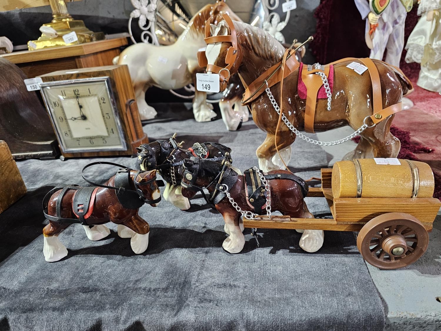 Shire horse collection to include horse in harness wine barrel wooden wagon and shire horse etc