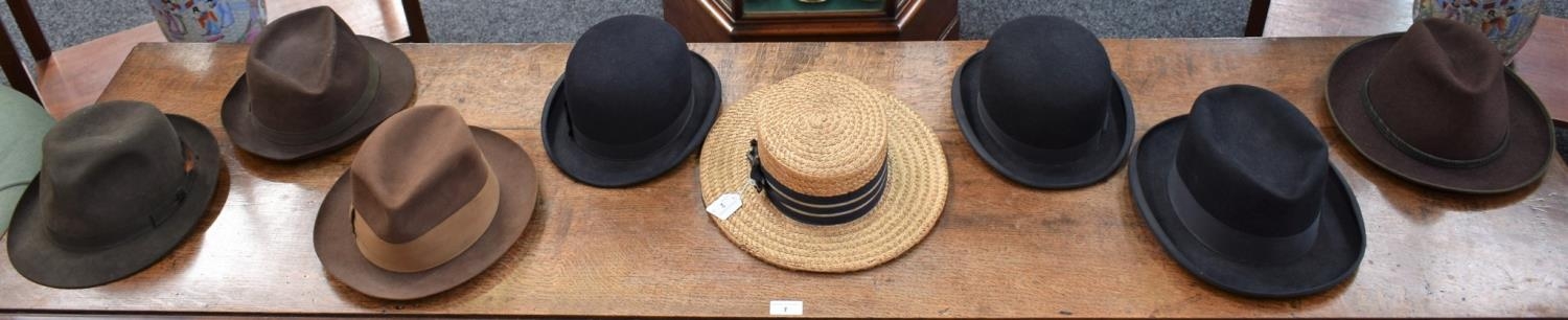 Vintage Millinery - a Dunn & Co bowler hat; another, Walter Barnard; other hats