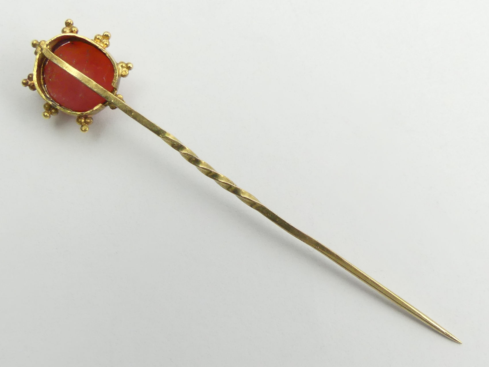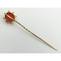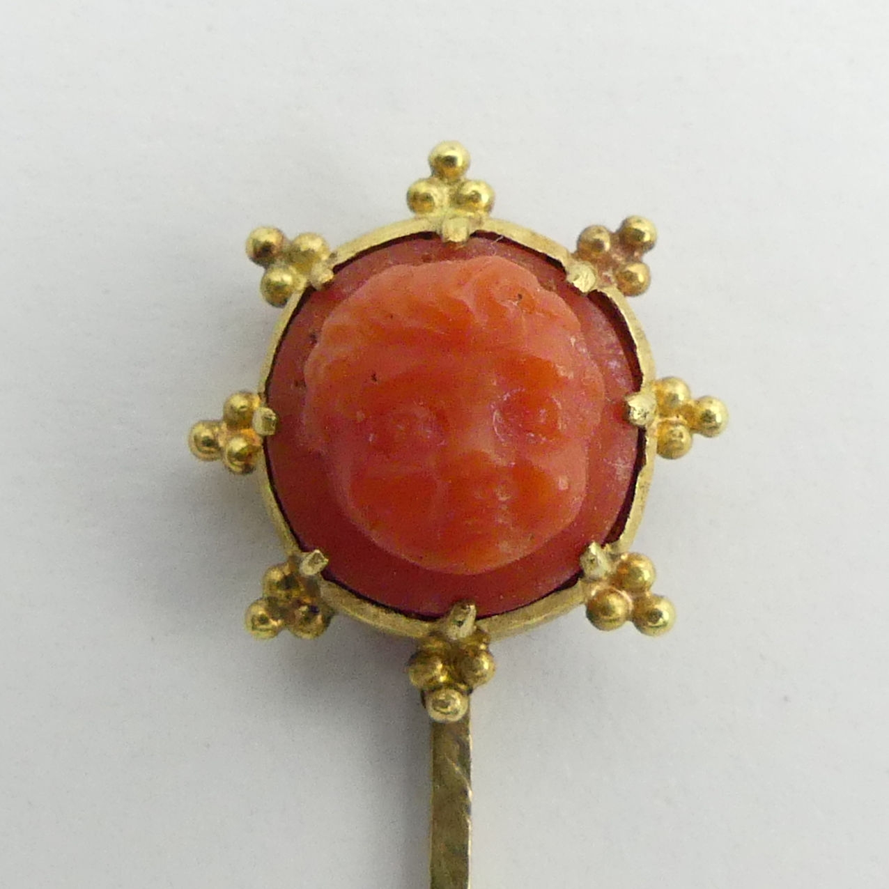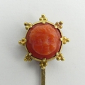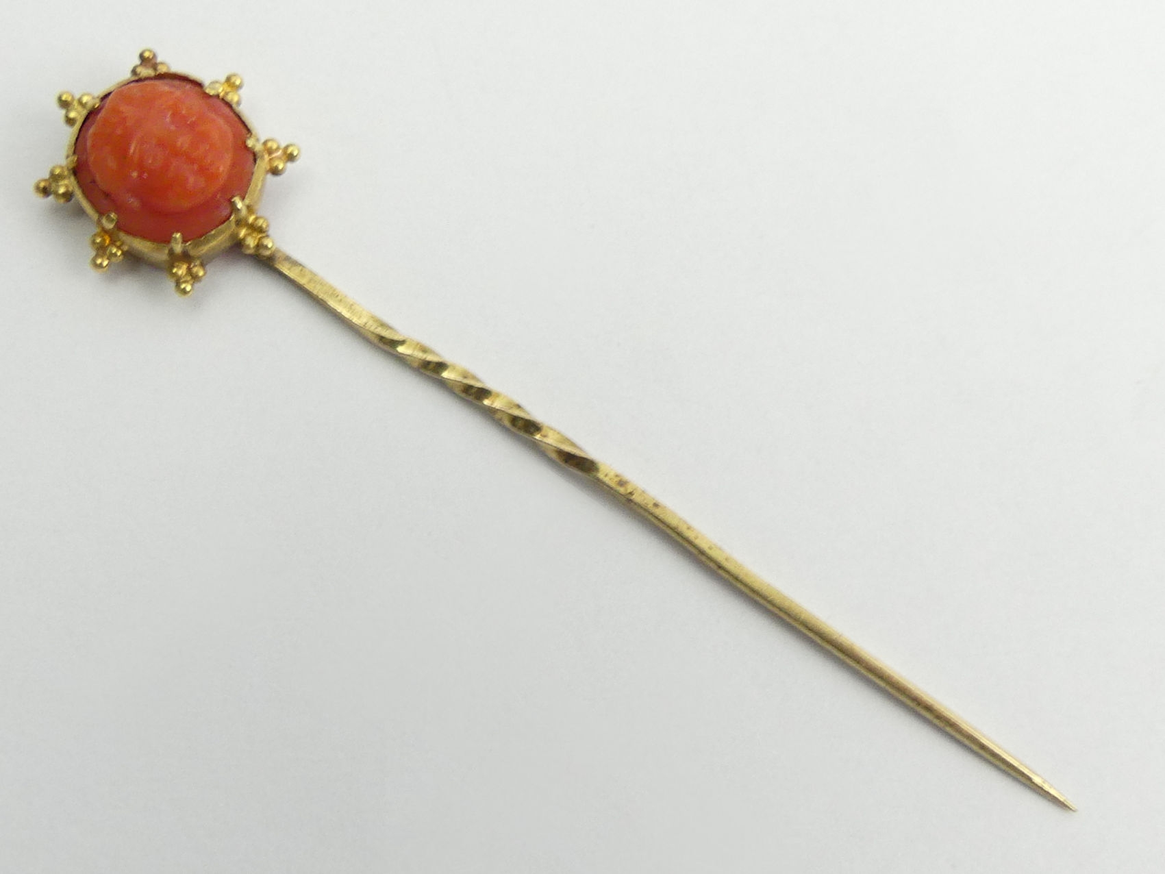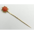 Gold Victorian carved coral stick pin, 1.6 grams, 62mm wide. UK Postage £12.