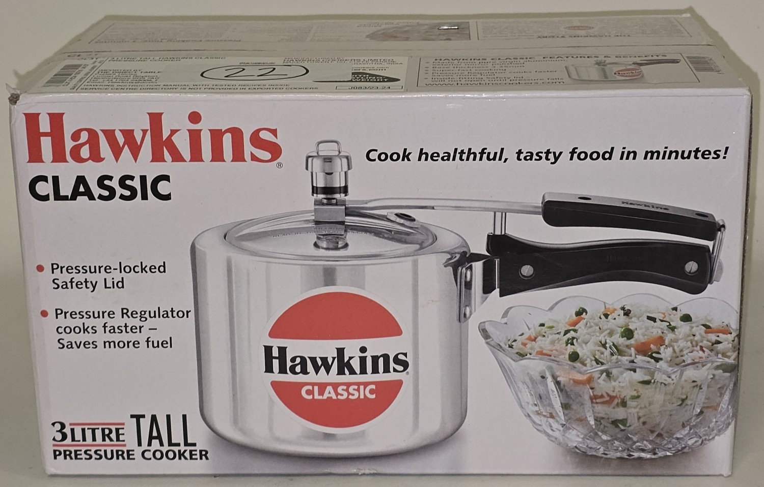 Hawkins Classic 3 Litre Pressure Cooker boxed appears new (REF E22).