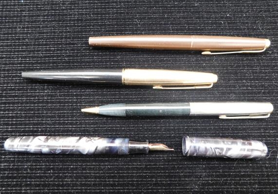 3x Vintage fountain pens and 1x pencil - 3x Parker, 1x Water...