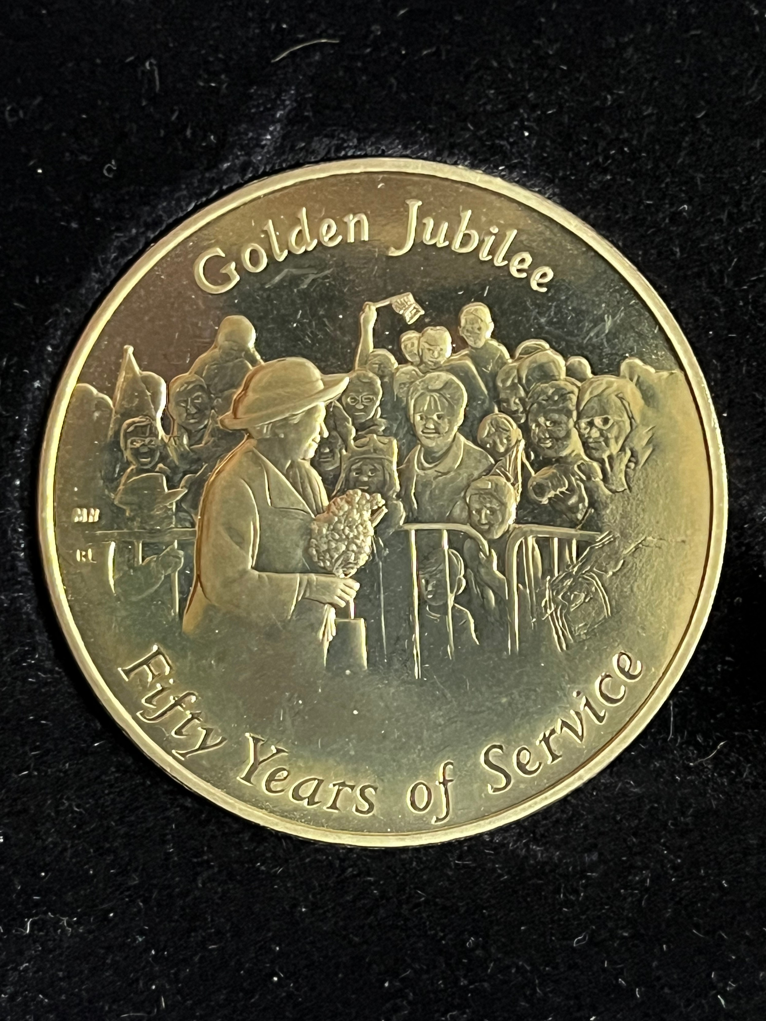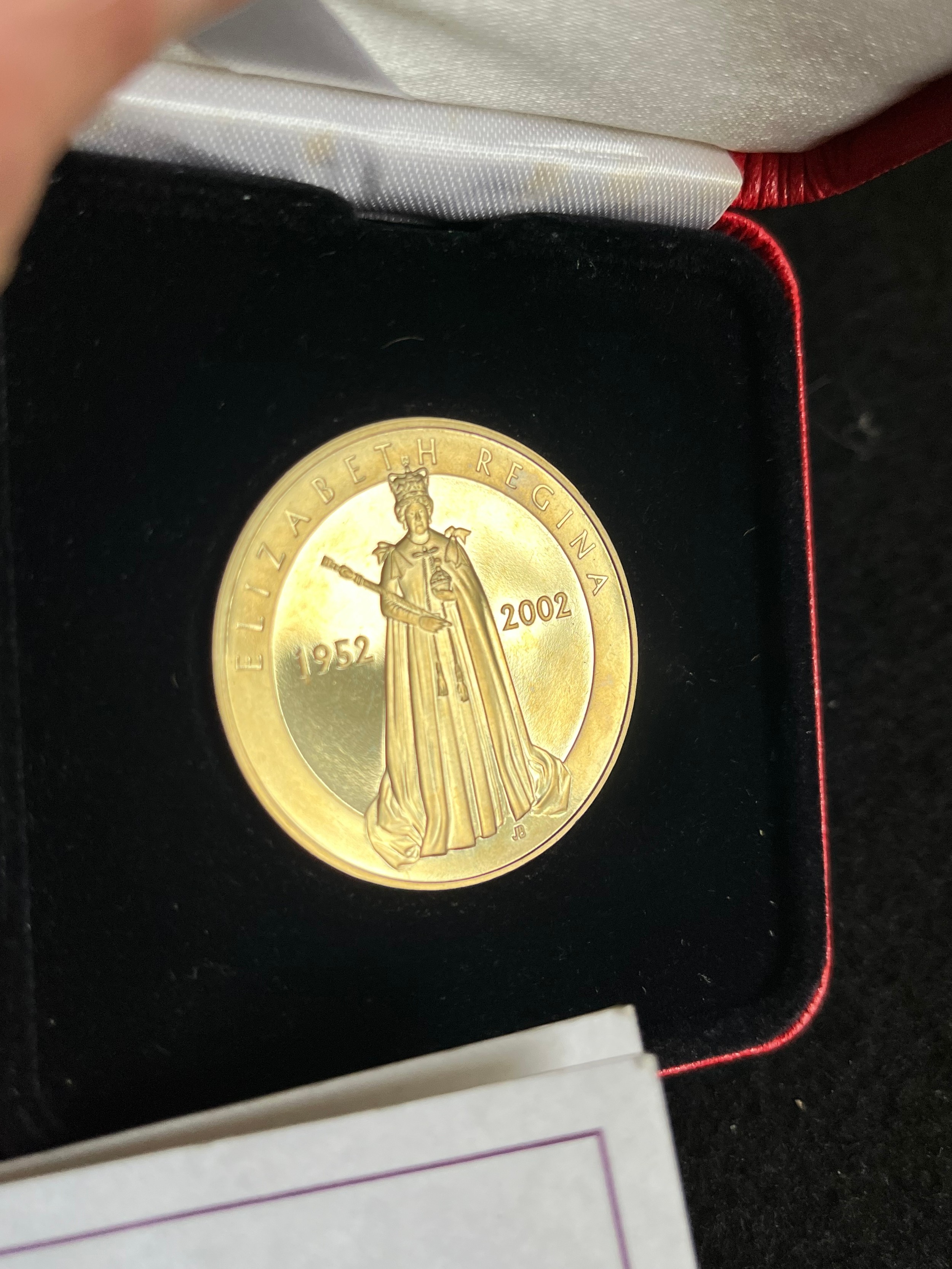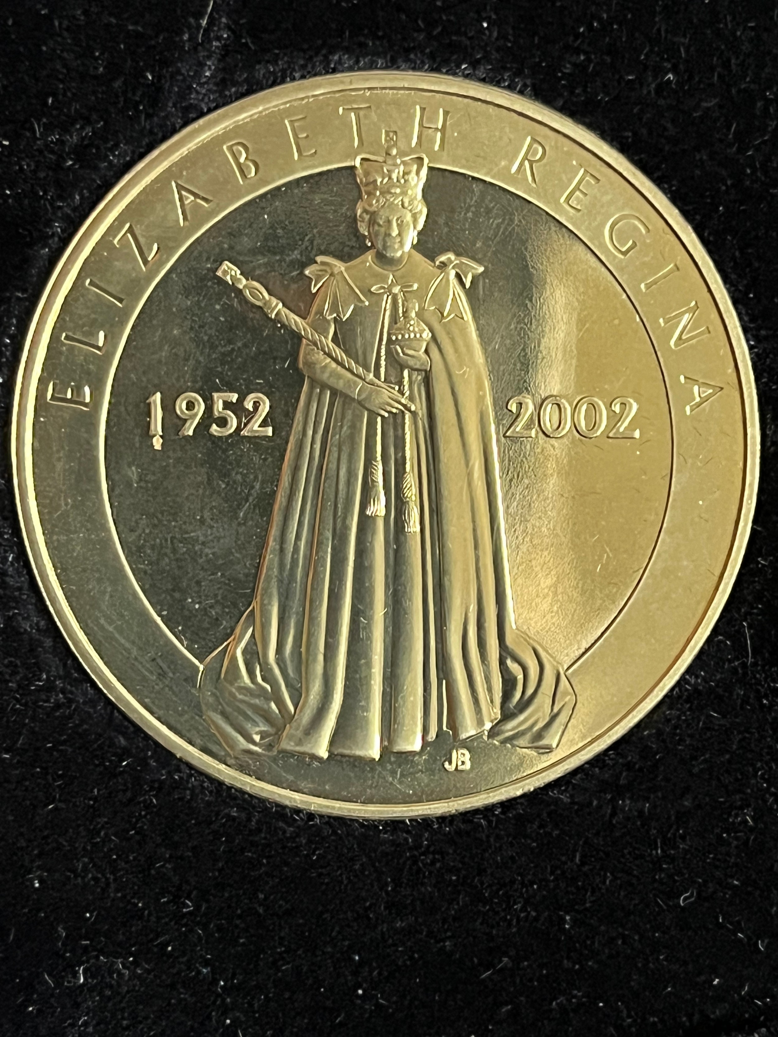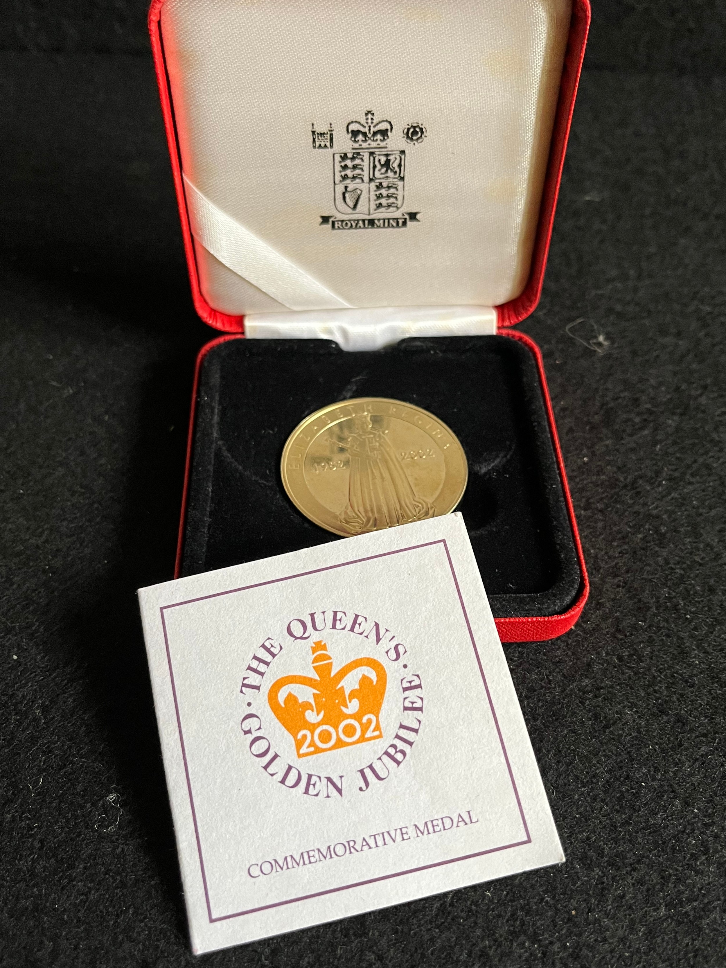 The Queens golden Jubilee commemorative medal 1952 to 2002. With info and box of issue