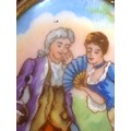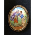 Pretty Limoges France convex hand painted porcelain brooch set in a ropework gold plated frame with pin to reverse