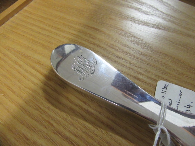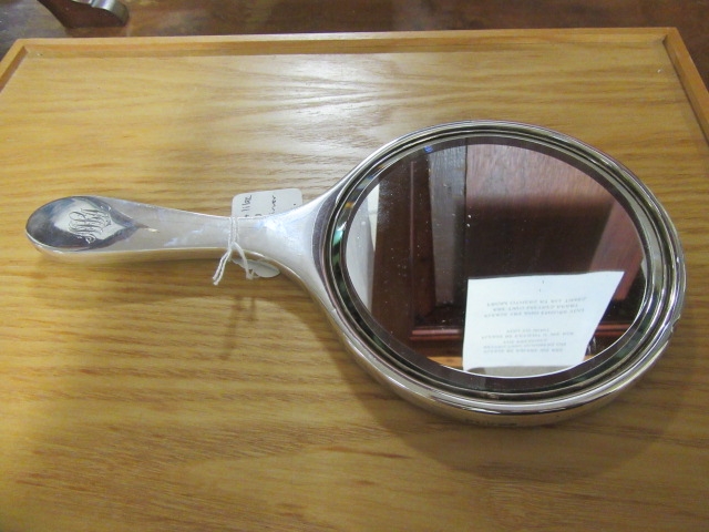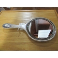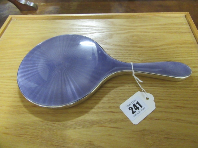 SILVER AND LILAC ENAMEL HAND MIRROR