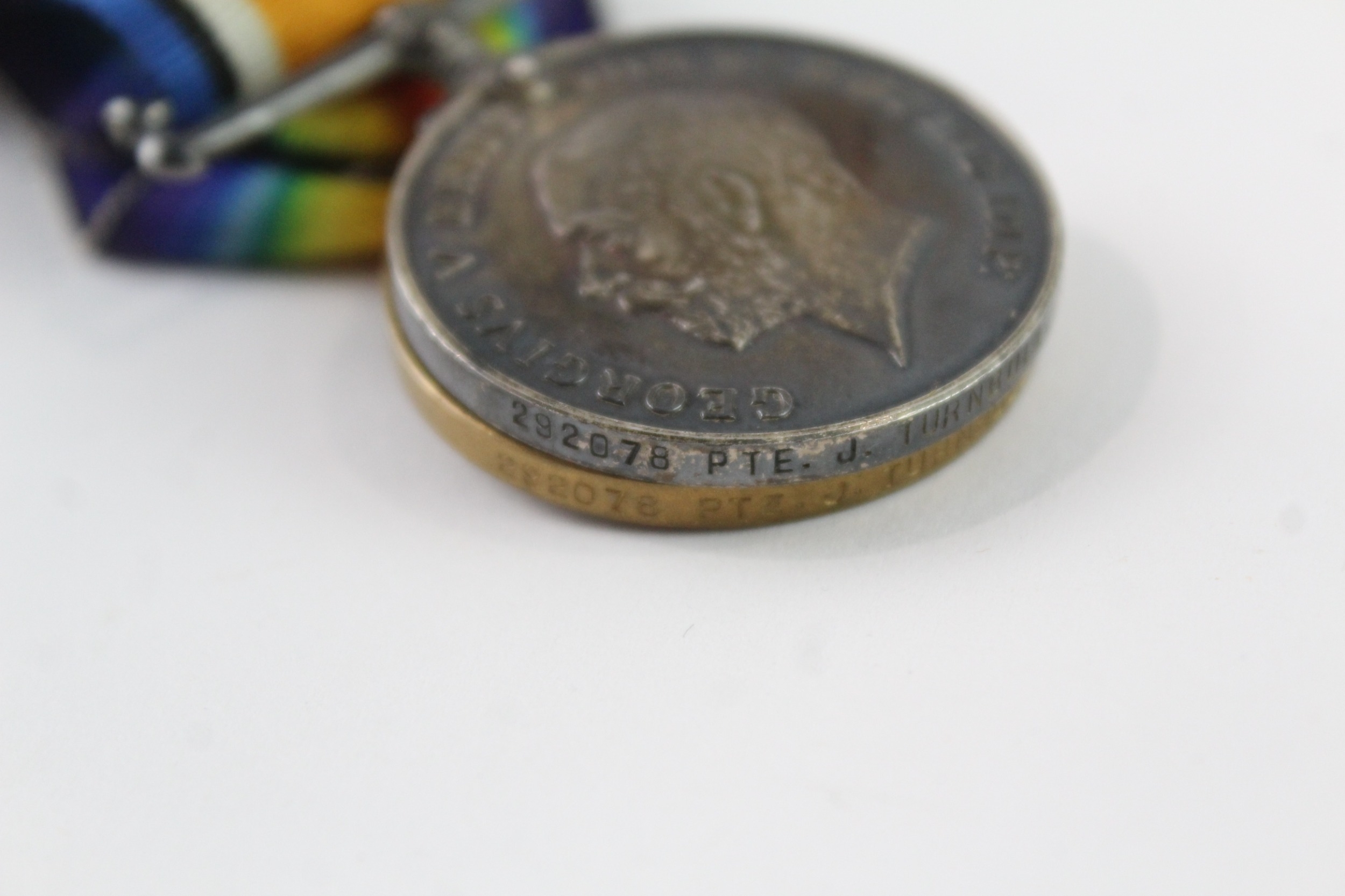 WW1 Medal Pair Named To- 292078 Pte J. Turnbull R Highers