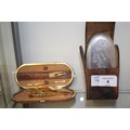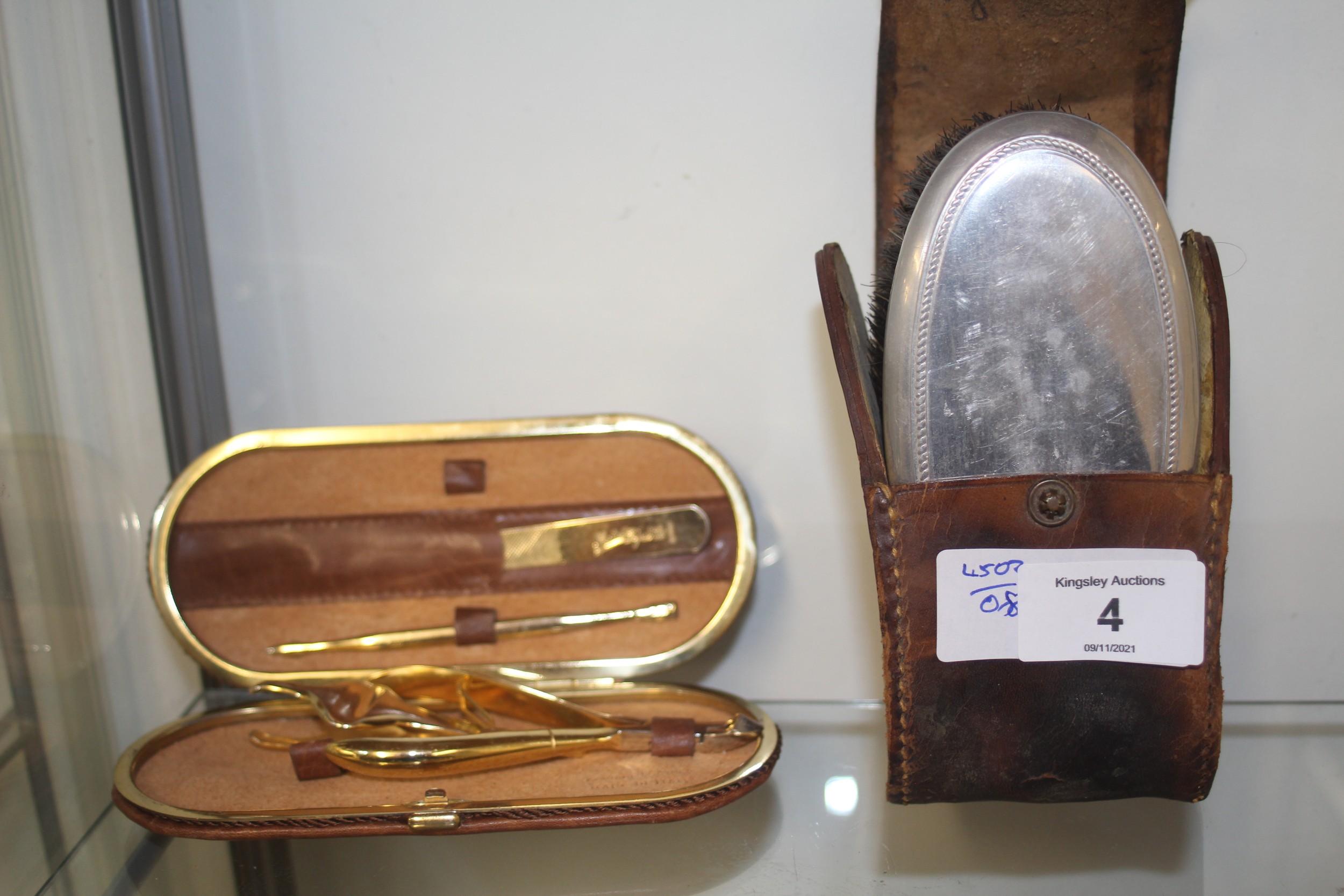 A Pair of Leather Cased Gents' Hairbrushes and a Modern Cased Gents' Vanity Set