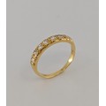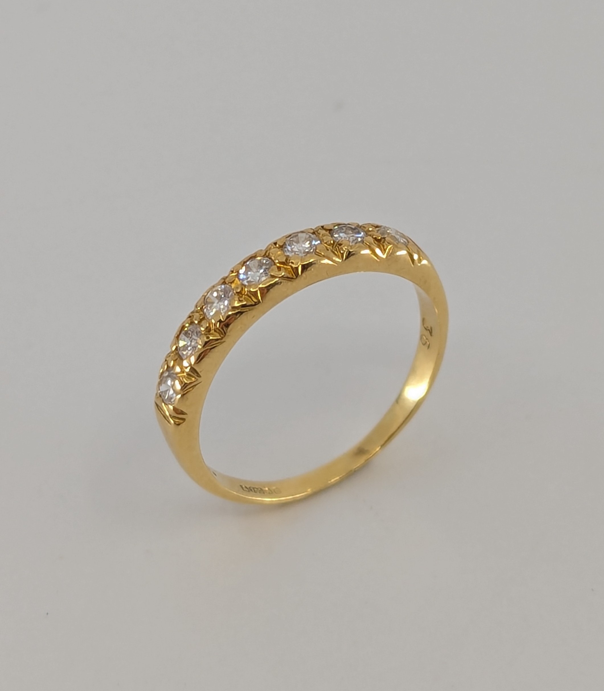 set with seven approx. 0.05ct round brilliant cut diamonds, total diamond carat weight approx. 0.35ct, hallmarked "750" for 18ct gold, size N, approx. 2.7g gross