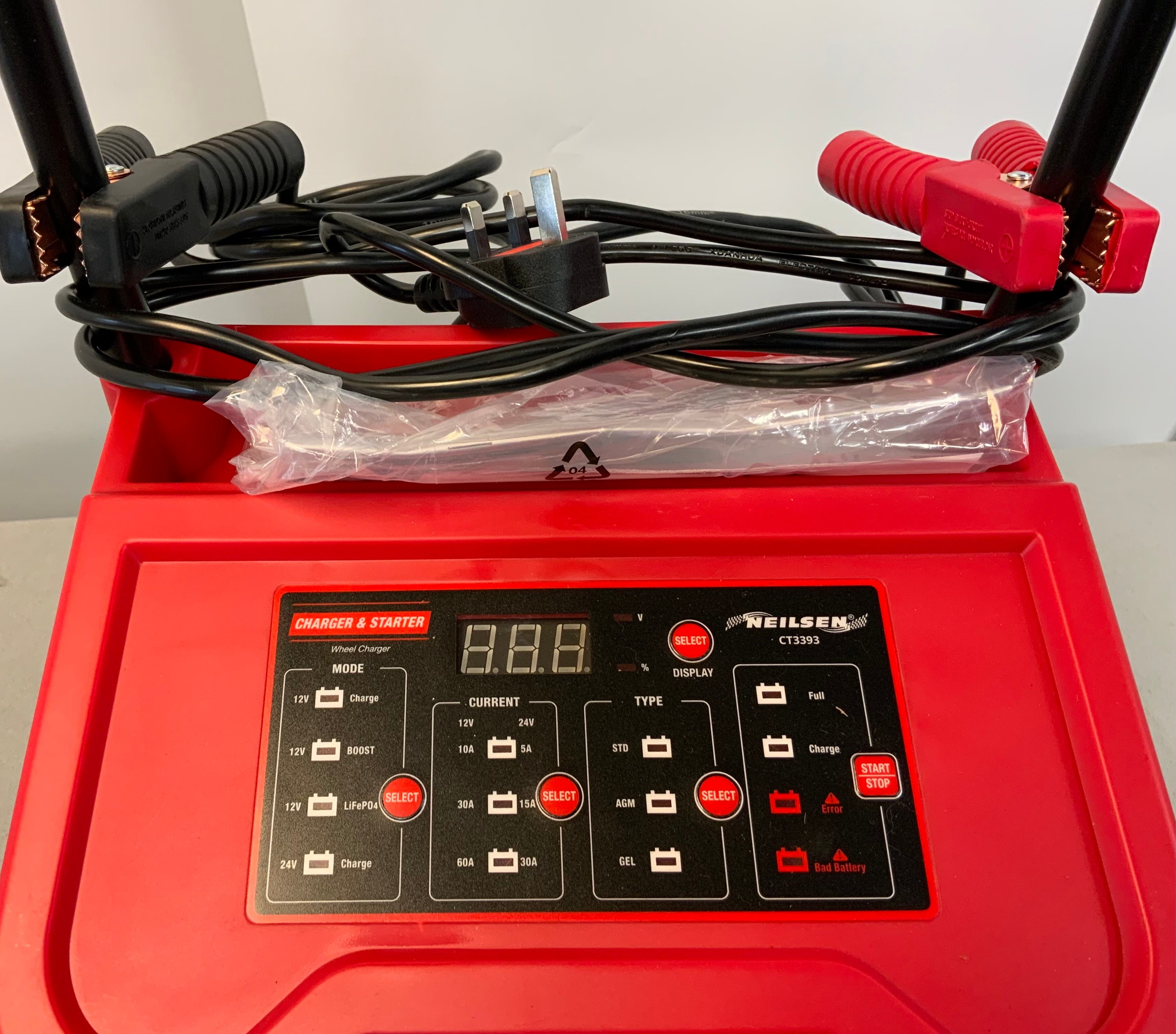 NEW NEILSON HEAVY DUTY SMART TROLLEY BATTERY CHARGER / STARTER 12/24V 200A (CT3393)