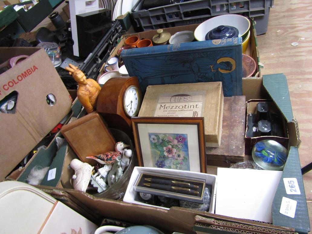 BOX OF MISC TO INCL CLOCK, BOOK, CHINA ETC