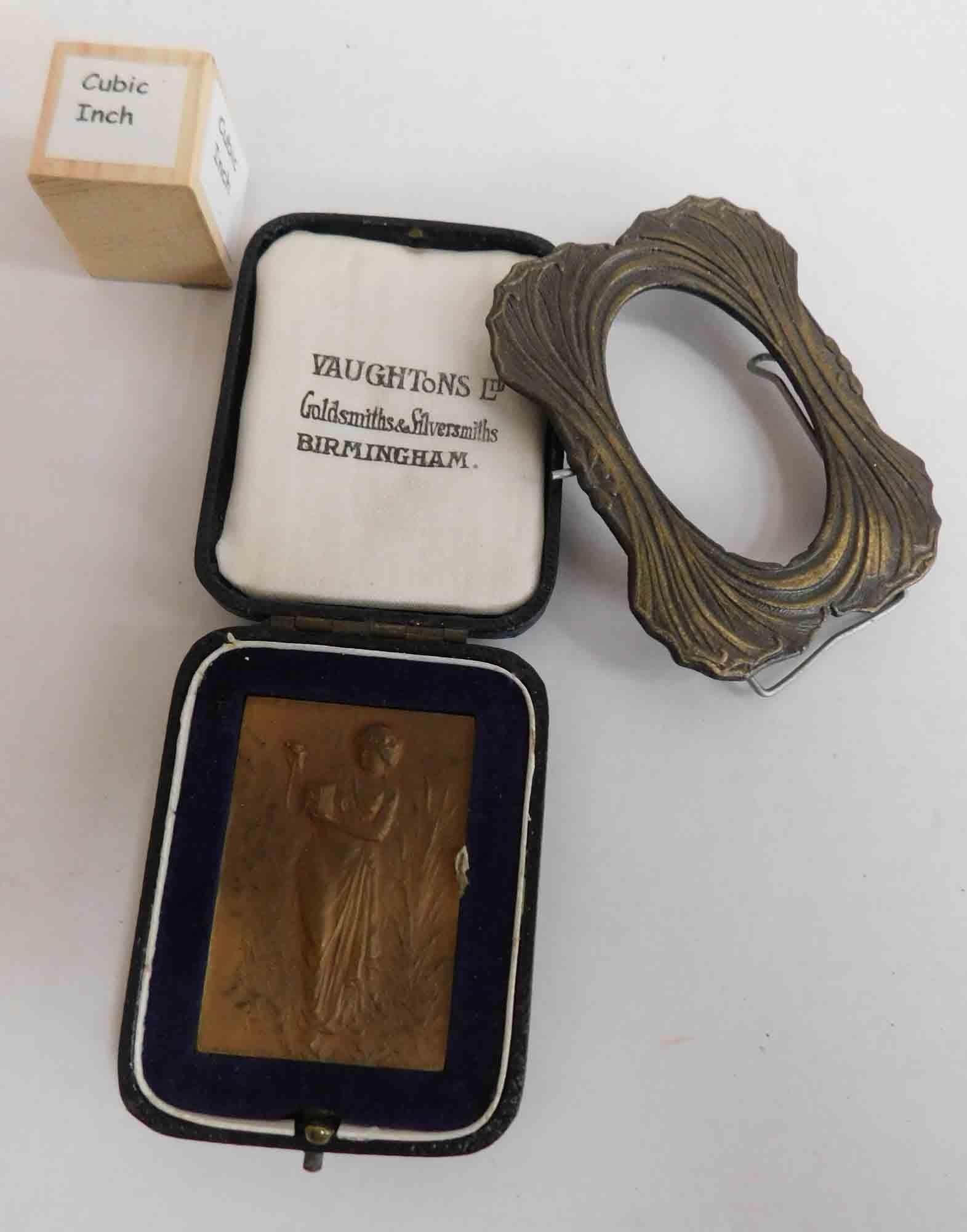 Vintage Arts & Crafts style - miniature frame & bronze/ metallic medallion