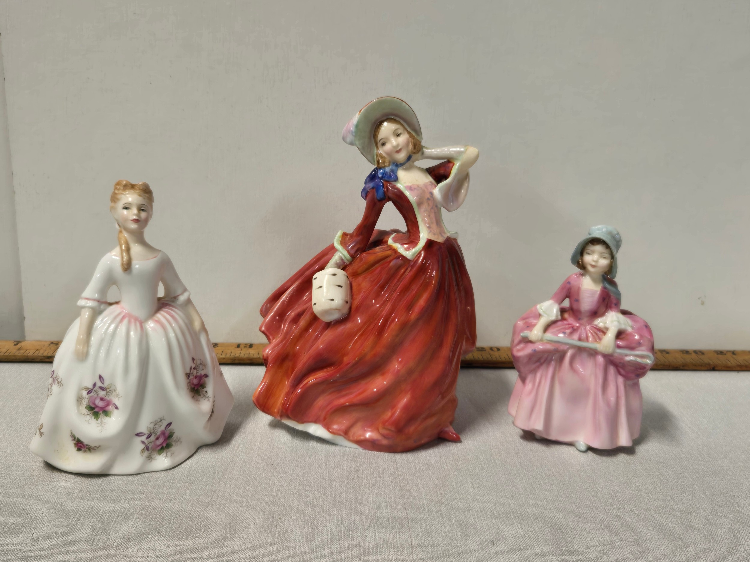 3 Royal Doulton Figurines to include 'Little Bo Peep', 'Autumn Breezes' & 'Lavender Rose.', tallest is 8".