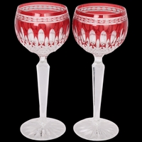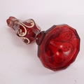 A Bohemian ruby glass Hookah base, with painted and gilded decoration, height 25cm, missing stopper