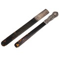Two Victorian silver handled tortoiseshell page turners one with foliate decoration to the handle, hallmarked London L 34.5cm & 32.5cm.