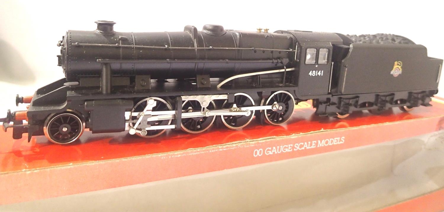 Hornby R324 Class 8F, Black, Early Crest, 4841 refinished, in very good condition, box poor. P&P Group 1 (£14+VAT for the first lot and £1+VAT for subsequent lots)
