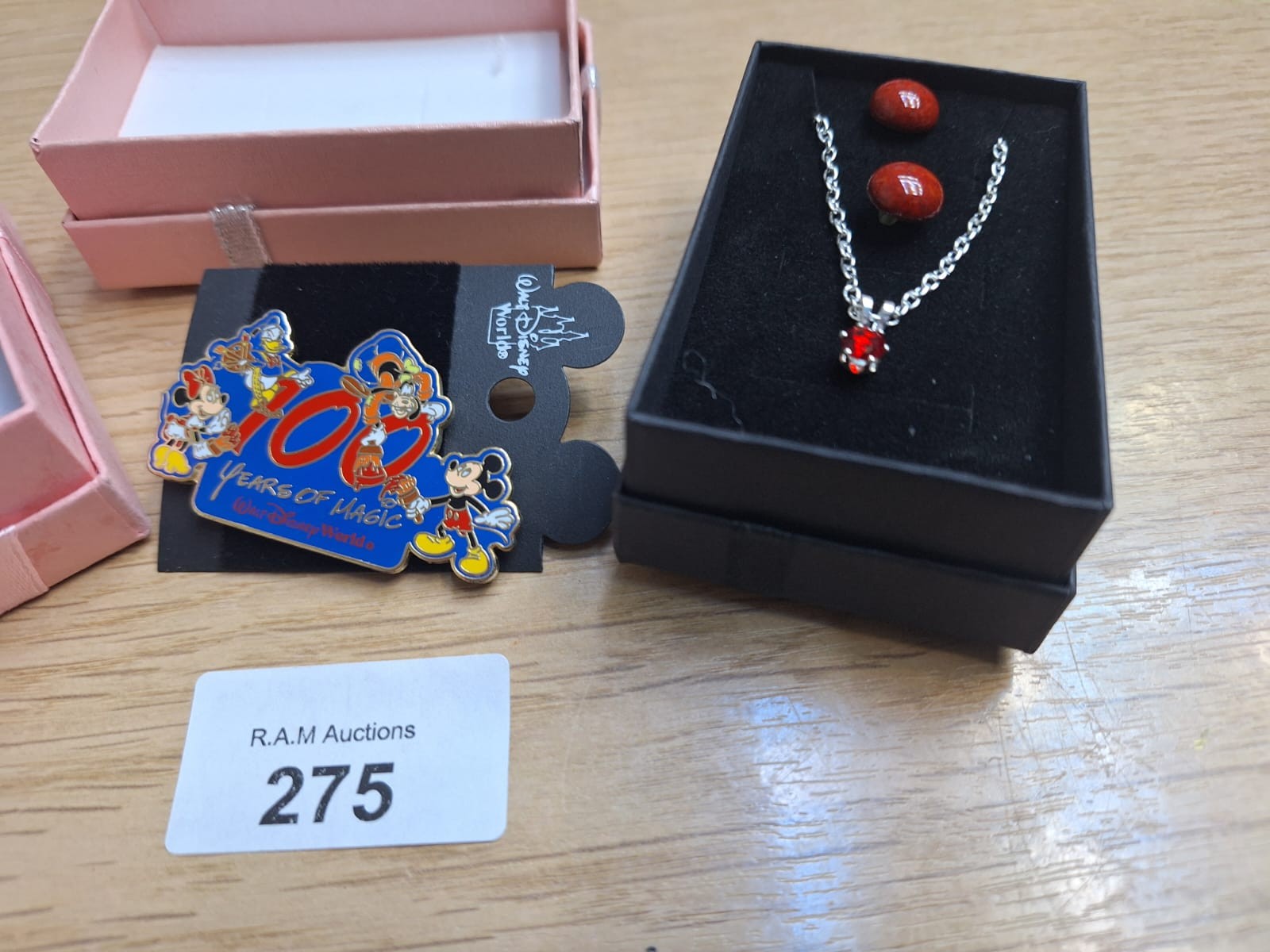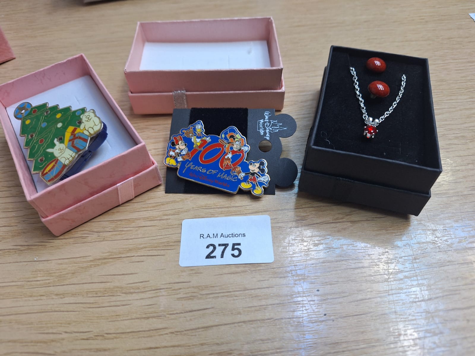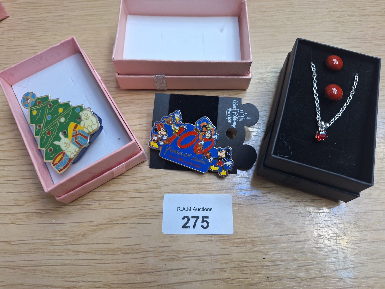 Boxed Fashion and Vintage Jewellery x3 To Include 100 Year Mickey Pin, Earrings and Necklace and a Christmas Brooch