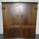 Figured Mahogany TV Cabinet with decorative hinges, on shaped plinth base, tassel handles