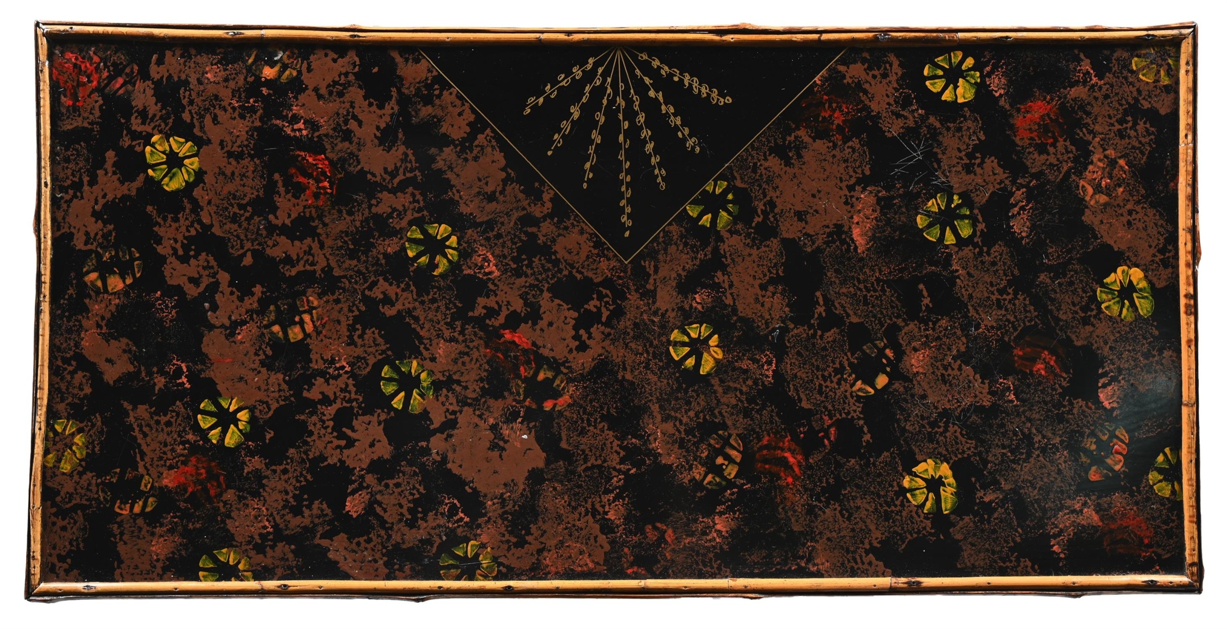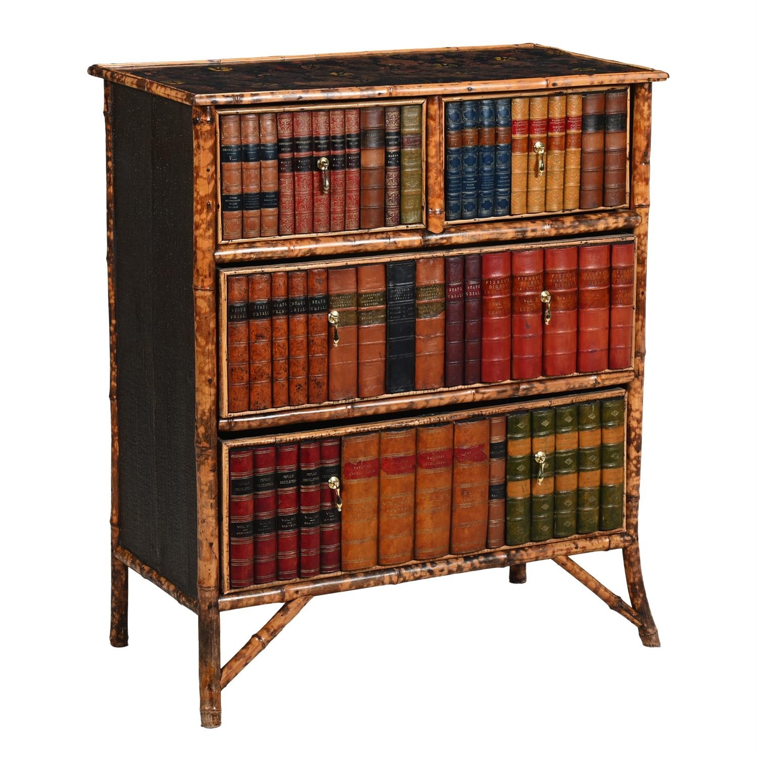 A BAMBOO LACQUER AND FALSE BOOK FRONTED CHEST OF TWO LONG DRAWERSMID 19TH CENTURY AND LATER 106cm, 91cm, 44cm deep